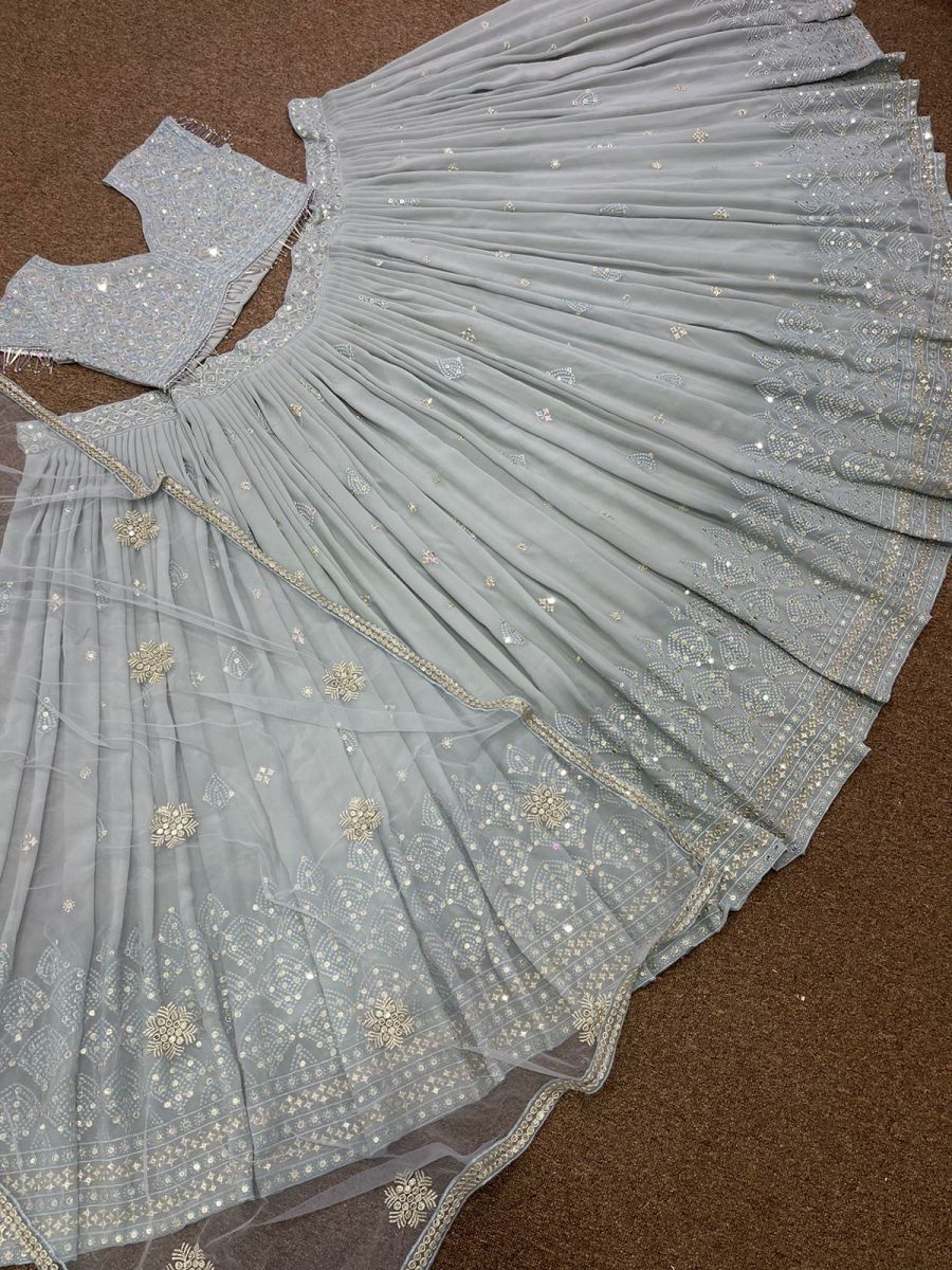 | FABRIC DETAILS | Lehenge FABRICE :- Heavy Fox Georgette WORK :- Heavy Embroidery 5mm Sequence Work INNER :- Micro CottonCHOLI FABRICE :- Heavy Fox Georgette WORK :- Heavy Embroidery 5mm Sequence Work With Fancy Latkan Lace Border SLEEVE :- Short Sleeve With Embroidery Sequence Work And Fancy Latkan Lace Border DUPATTA FABRICE :- Heavy Butterfly Net WORK :- Heavy Embroidery 5mm Sequence Work BASIC DETAILSLehenga :- Semi Stitched Lehenga Length :- 42-44 Inc Lehenga Flair :- 3 MTR Flair Dupatta Length :- 2.1 MTR Blouse :- 1 Mtr Fabric Unstitched |