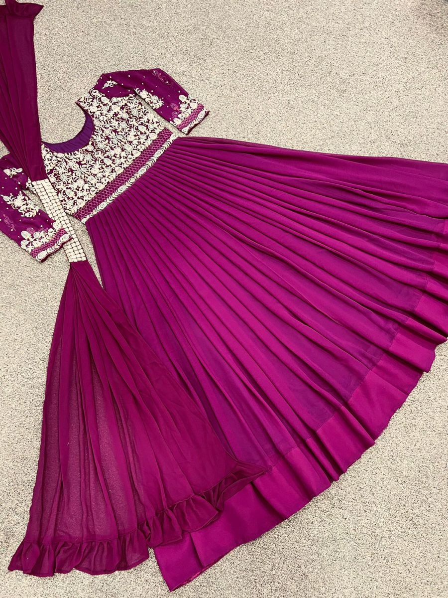 WORK :- Fancy MattaL belt Work With Fancy Ruffal Work BASIC DETAILSGown :- Fully Stitched