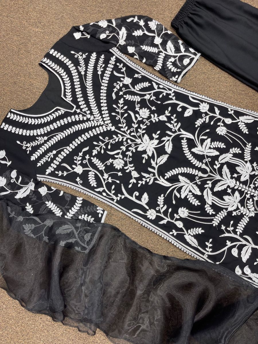 | FABRIC DETAILS | TOP FABRICE :- Heavy Fox Georgette WORK :- Heavy Embroidery Work SLEEVE :- full sleeve with heavy embroidery Work INNER :- Micro CottonPENT FABRICE :- Heavy Butter Silk WORK :- NoDUPATTA FABRICE :- Organza silk WORK :-fancy Dubble Lear Dupatta BASIC DETAILSPent Length :- 40-42 Inc Up To XXL Top Length :- 46-48 Inc Top Size :- XL FULL Stitched With XXL Margin Dupatta :- 2.1 MTR |