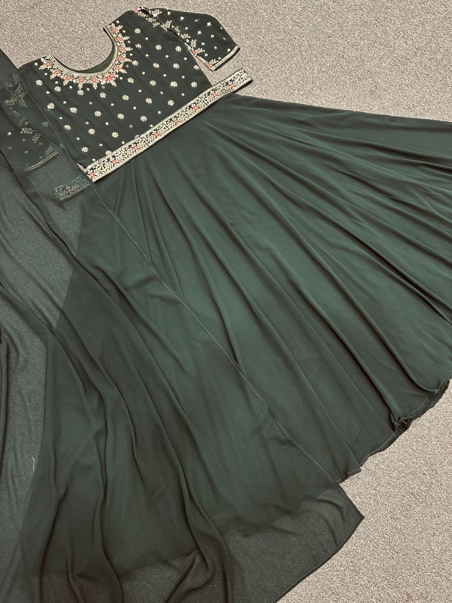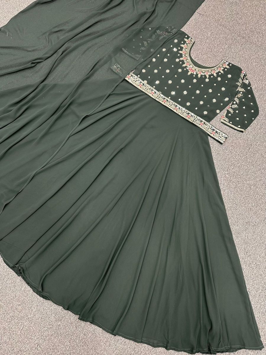| FABRIC DETAILS | GOWN FABRICE :- Heavy Faux Georgette WORK :-fancy Embroidery 5MM Sequence Work with real mirror hand work SLEEVE :- full sleeve with fancy embroidery work INNER :- Haevy micro cottonBELT FABRICE *:- Heavy faux georgette WORK :-Heavy embroidery workDUPATTA FABRICE :- Heavy faux georgetteBASIC DETAILSGown :- Fully Stitched Gown Length :- 54-56Inc Gown Flair :-6 MTR Umbrella flair Gown Size :-M-38,L-40,XL-42,XXL-44. |