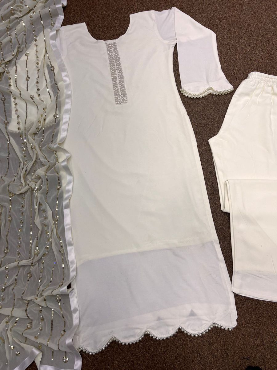 | FABRIC DETAILS | TOP FABRICE :- Heavy reyon cotton WORK :-fancy stitching riveted Moti work SLEEVE :- Full Sleeve With fancy stitching riveted Moti work INNER :- Micro CottonPENT FABRICE :-Heavy reyon cottonDUPATTA FABRICE:- Heavy faux georgette WORK :- Heavy embroidery work with riveted Moti work and Satin patti lace borderBASIC DETAILSPent Length :- 40-42 Inc Up To XXL Top Length :- 47-48Inc Top Size :-M-38,L-40,XL-42,XXL-44 . FULLY STITCHED Dupatta :- 2.1 MTR |