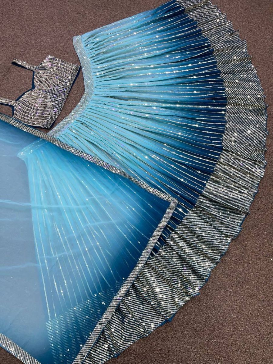 | FABRIC DETAILS | Lehenge FABRICE :- Heavy Fox Georgette WORK :- Heavy Embroidery 5mm Sequence Work With Fancy Digital Print Work INNER :- Micro CottonCHOLI FABRICE :- Heavy Fox Georgette With Digital Print Work WORK :- Heavy Embroidery 5mm Sequence Work SLEEVE :- Short Sleeve Plain Fabric DUPATTA FABRICE :- Heavy Fox Georgette With Digital Print Work WORK :- Heavy Embroidery 5mm Sequence Work Lace Border BASIC DETAILSLehenga :- Semi Stitched Lehenga Length :- 42-44 Inc Lehenga Flair :- 3 MTR Flair Dupatta Length 1 :- 2.1 MTR Blouse :- 1 Mtr Fabric Unstitched |