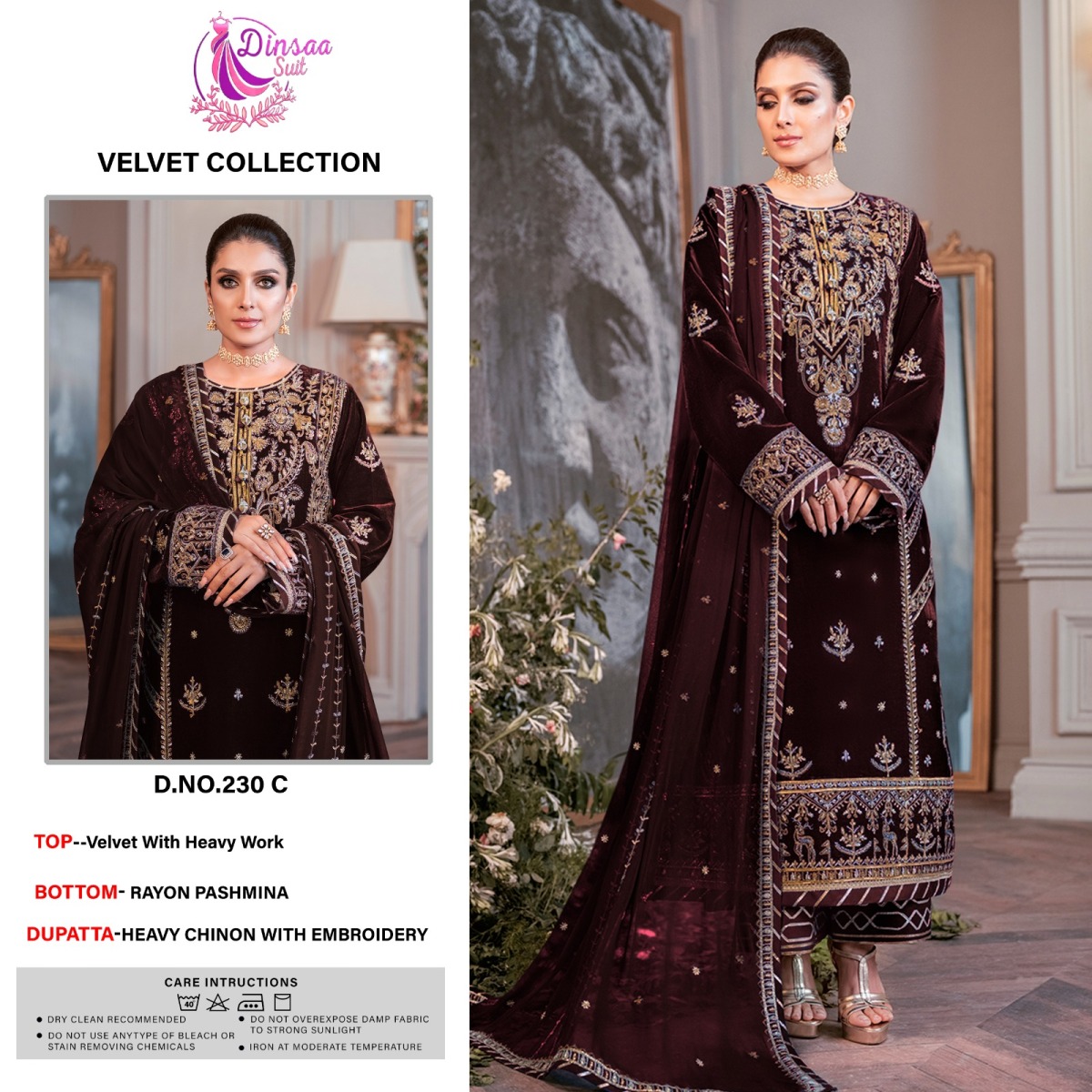 DINSAA 230 C VELVET PAKISTANI SUITS IN INDIA