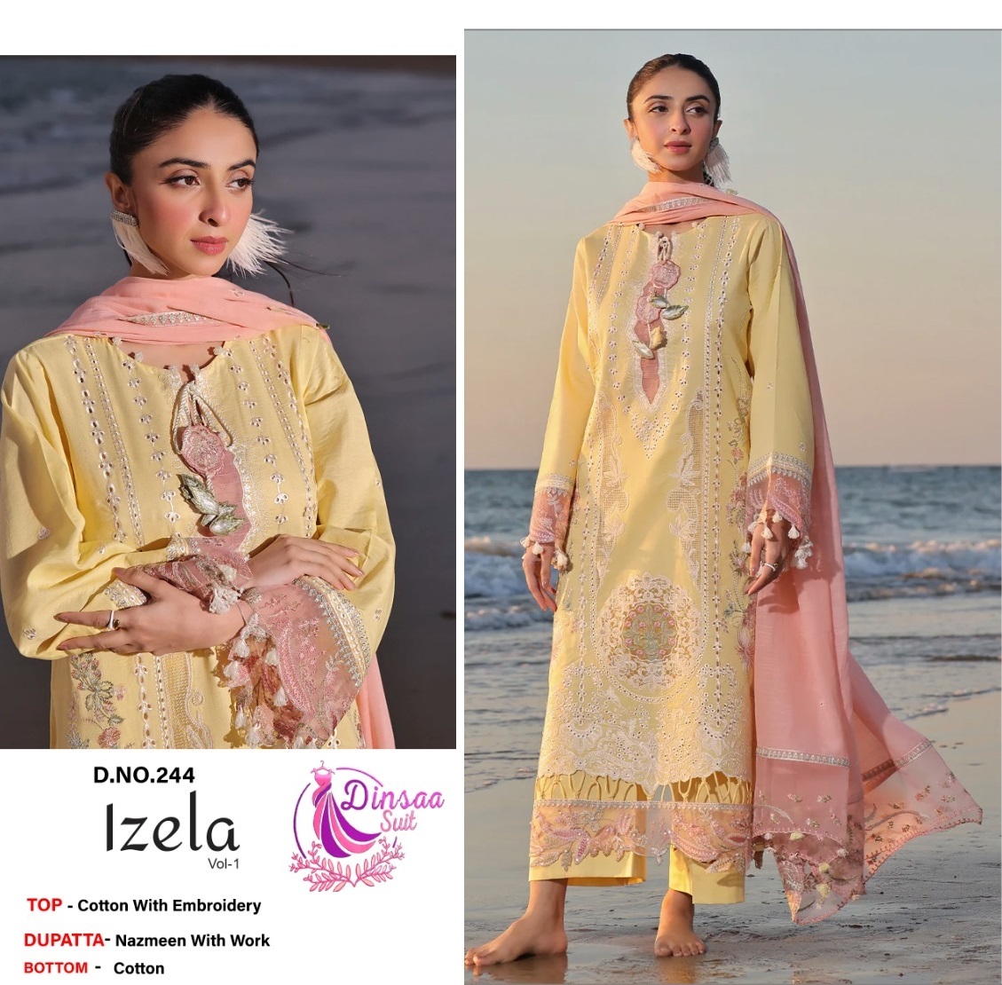 ( DINSAA SUIT 244 IZELA VOL 1 COTTON SALWAR SUITS ) Buy in wholesale price