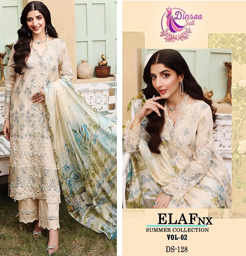Buy DINSAA SUIT DS 128 ELAF NX VOL 2 SALWAR SUITS from Pehnava Fashion mart in best price with Fast Shipping all over world