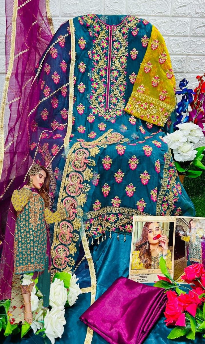| FABRIC DETAILS | Top :- HEAVY DAL ORGANZA EMBROIDERED WITH HAND WORKDupatta :- HEAVY DAL ORGANZA WITH EMBROIDERY WORK WITH 4 SIDE LESSINNER:- SANTOONBottom :- SANTOON WITH WORK |