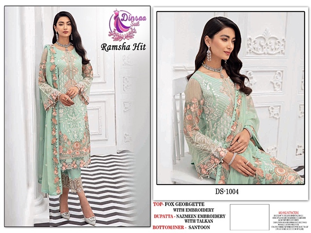 | DETAILS | *Top*_:- HEAVY FOX GEORGEETE EMBROIDERED WITH HEAVY (HANDWORK) _*Dupatta*_ *NAZMEEN HEAVY WORK FOUR SIDE LACE* _*Bottom*_:-SANTOON _*INNER*_:-SANTOON |