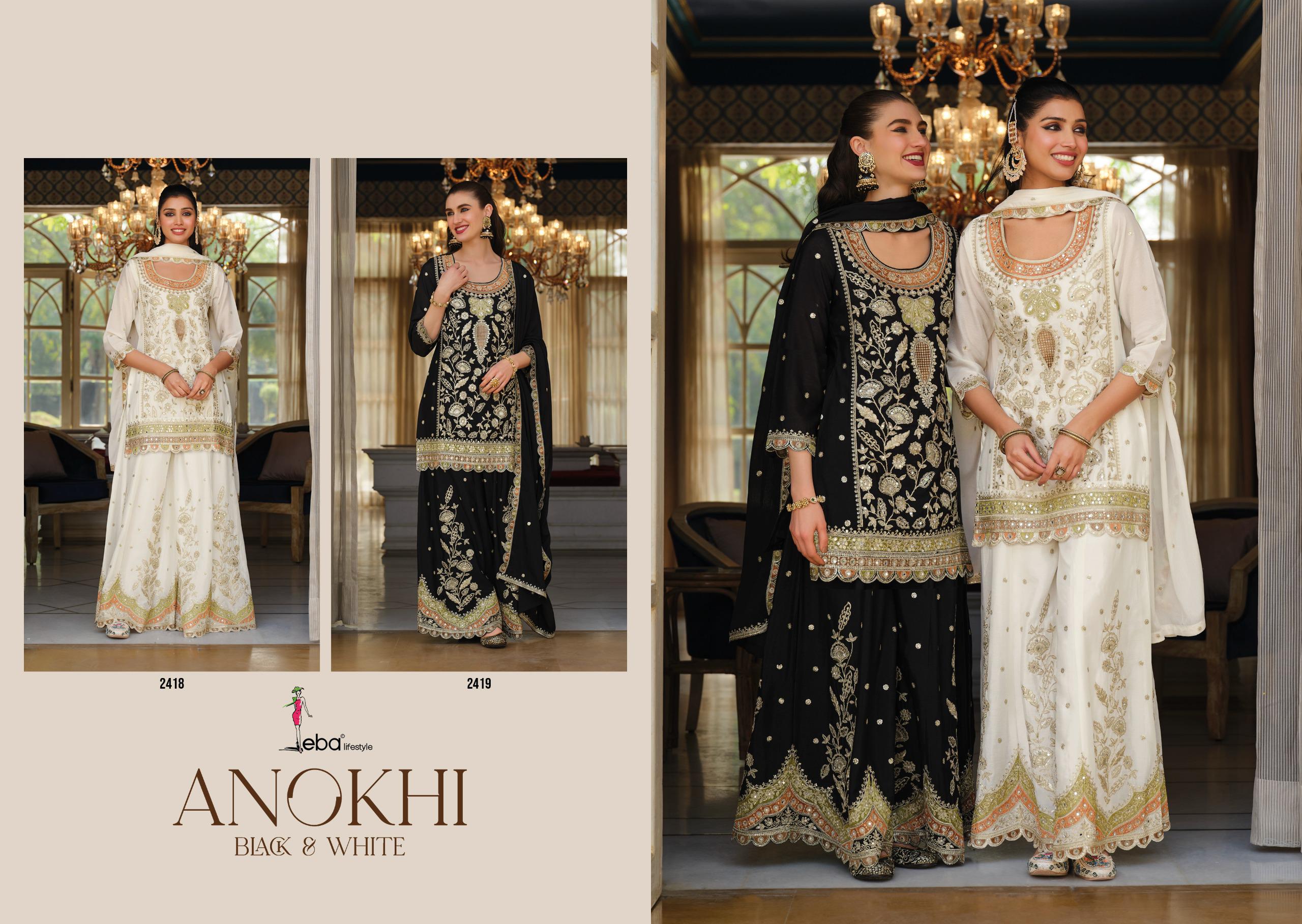 EBA LIFESTYLE ANOKHI BLACK & WHITE READYMADE SUITS