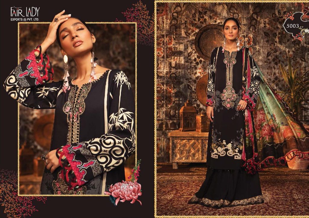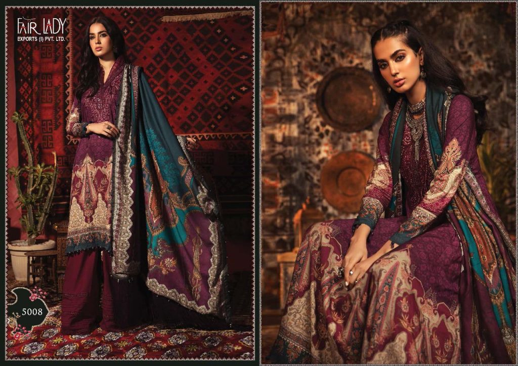 | DETAILS | *FAIR LADY EXPORTS(I)PVT LTD* *Name – *MARIA.B M PRINTS* Fabric details – Bot – *Pure pashmina print * Dup – Pure Pashmina dobby print Designs – 8 |