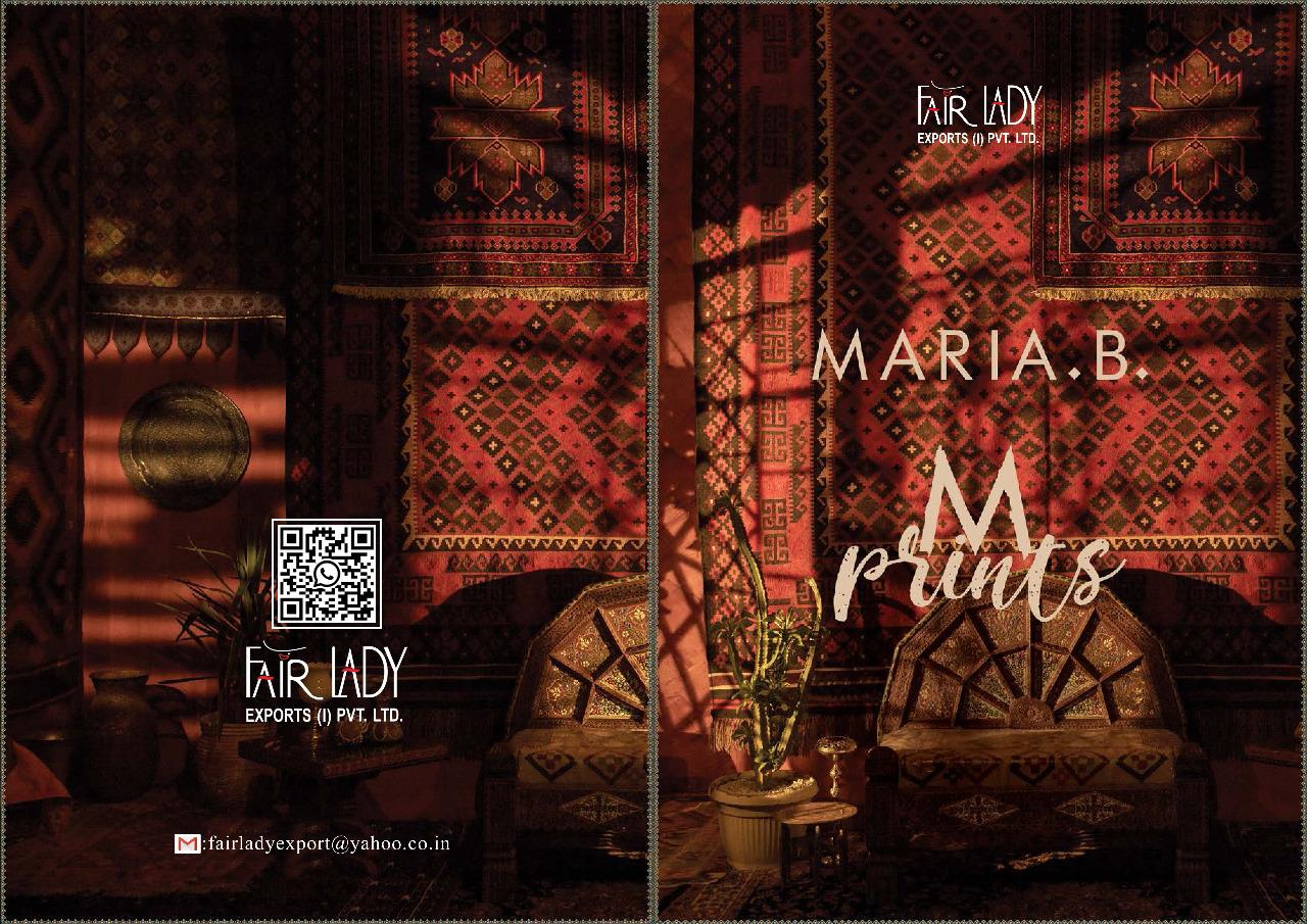 | DETAILS | *FAIR LADY EXPORTS(I)PVT LTD* *Name – *MARIA.B M PRINTS* Fabric details – Bot – *Pure pashmina print * Dup – Pure Pashmina dobby print Designs – 8 |