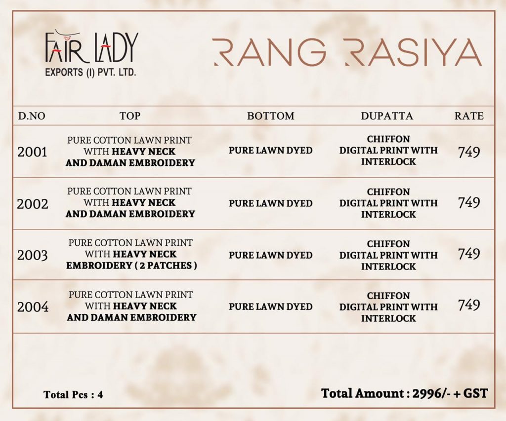 FAIR LADY RANG RASIYA 2001-2004 SERIES | WHOLESALE