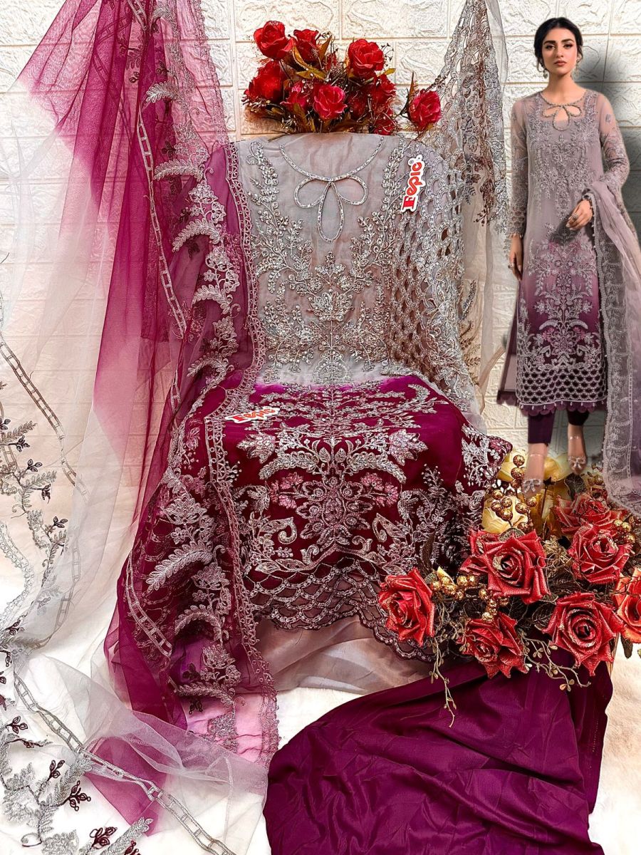 FABRIC DETAILS :- Top:- ORGANZA SHADED EMBROIDERED Dupatta:- NET SHADED HEAVY EMBROIDERED Bottom:- SANTOON INNER:- SANTOONFEPIC C 1349 ROSEMEEN PAKISTANI SUITS IN INDIA