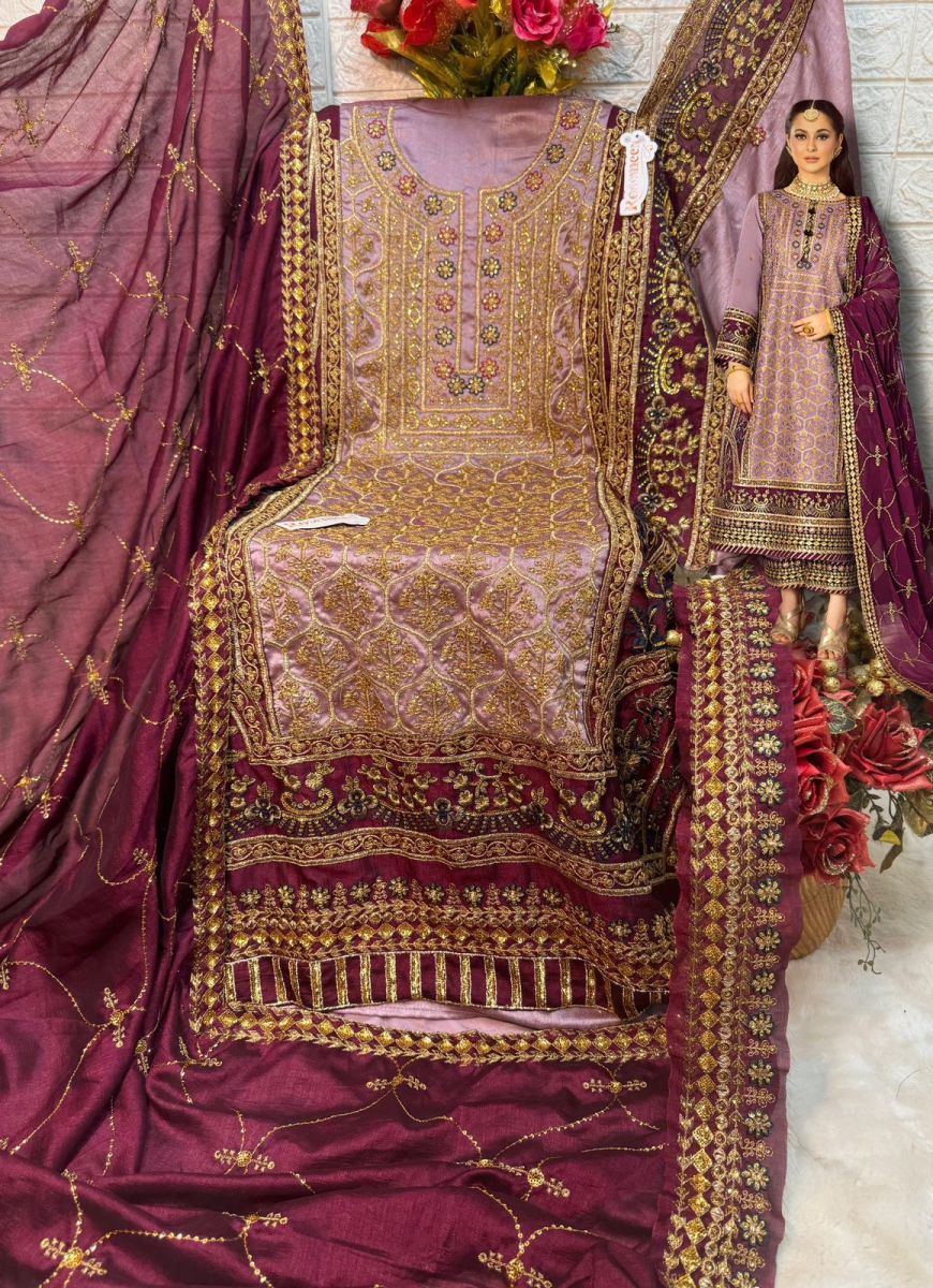 | FABRIC DETAILS | Top:- CHINON SILK EMBROIDERED WITH HEAVY HANDWORK Dupatta:- CHINON HEAVY EMBROIDERED Bottom:- SANTOON WITH EMBROIDERED PAYAL BUNCHES INNER:- SANTOON |