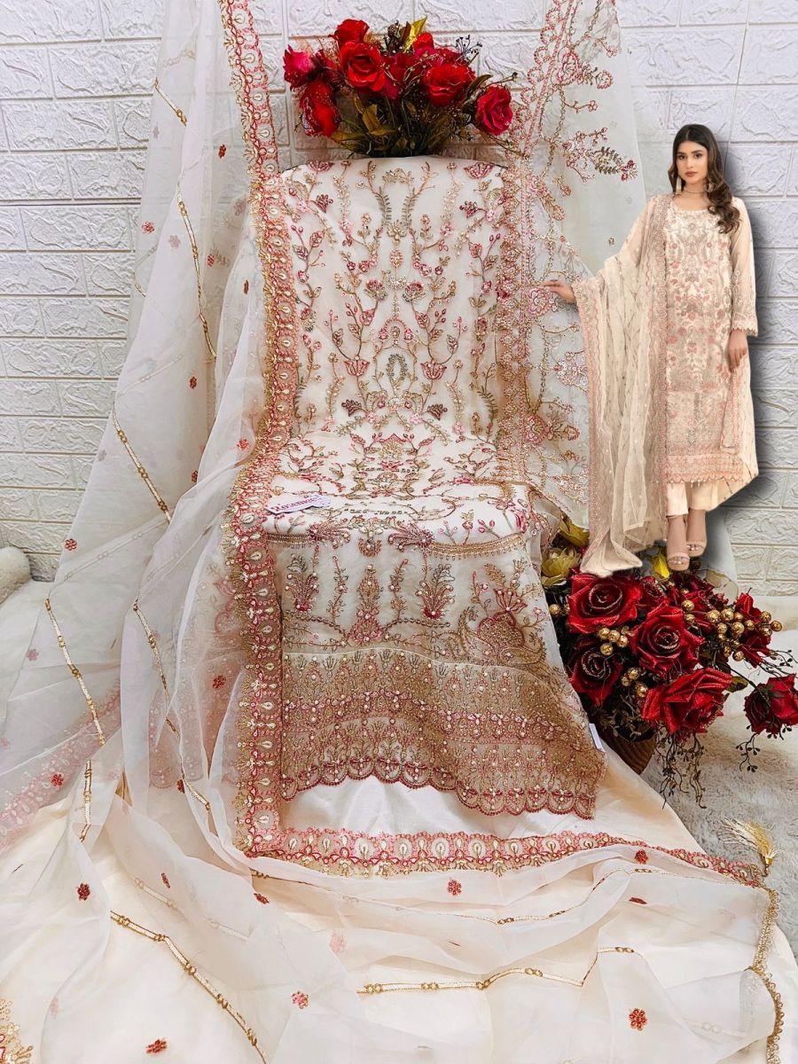 | FABRIC DETAILS | Top:- ORGANZA EMBROIDERED WITH HEAVY HANDWORK Dupatta:- ORGANZA EMBROIDERED Bottom:- SANTOON INNER:- SANTOON |