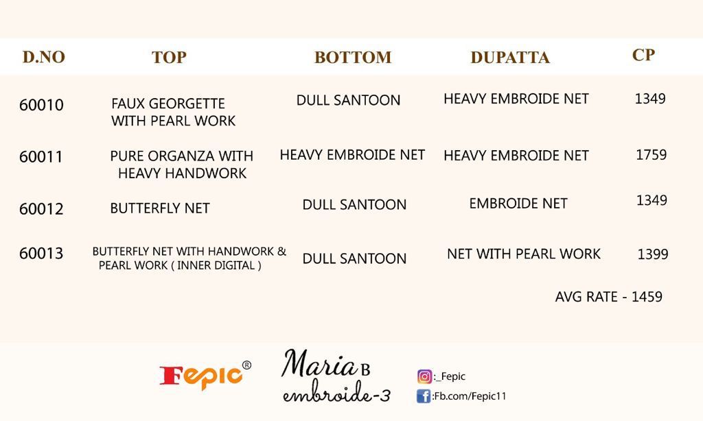 FEPIC MARIA B EMBROIDE VOL 3 | WHOLESALE