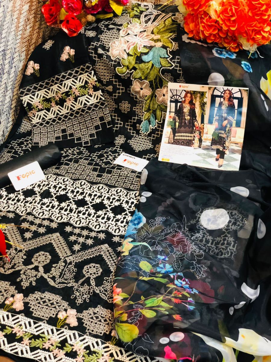 | DETAILS | Top : PURE COTTON EMBROIDEREDBottom :SEMI LAWNDupatta : TUBBY SILK DIGITALY PRINTED / NET EMBROIDERED |