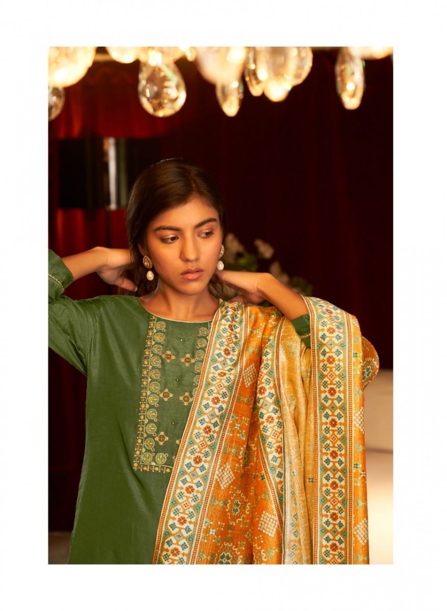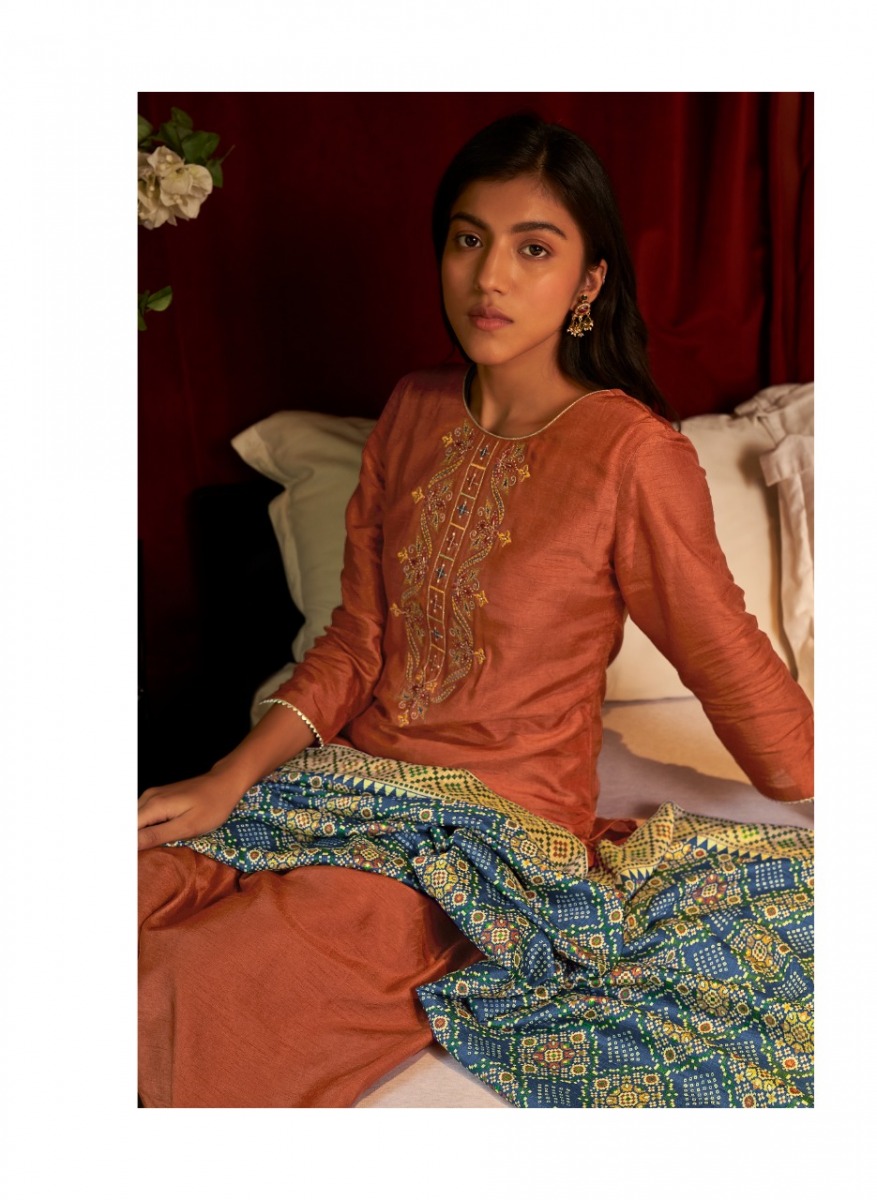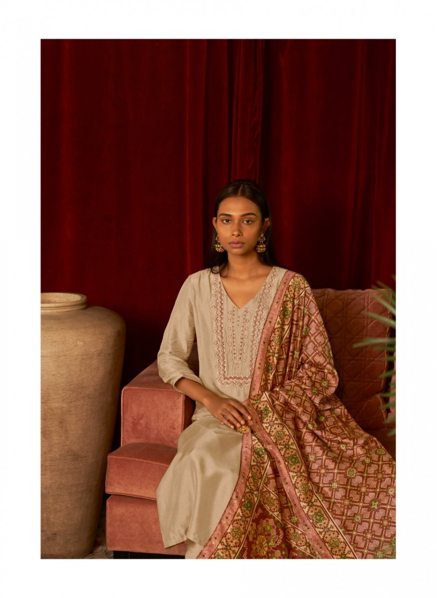 | DETAILS | *FABRIC* KURTI - PURE DOLA SILK WITH INTRICATE EMBROIDERIES PANTS - PURE VISCOSE SILK DUPATTA - DIGITAL PRINT ON PURE TUSSAR SILK SIZES - S, M, L, XL, XXL, 3XLTotal PCS- 6LENGTH KURTI- 46" PANTS- 37.5" DUPATTA - 36" AND 2.5 MTRS |