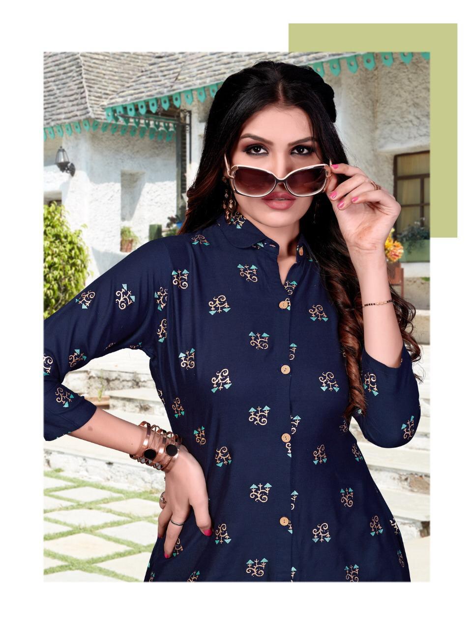 | DETAILS | ? Fabric : Rayon top block foil print ? Palazoo fabric -Reyon 14 kg ? Size :M(38) L(40), XL(42), XXL(44) |