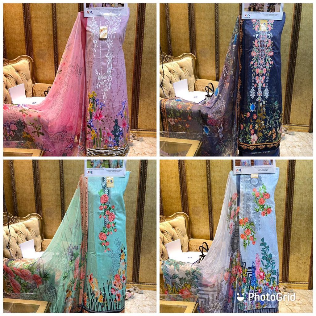 | DETAILS | Top: Pure Jam cotton with heavy self embroidery Sleeve: pure jam cotton with digital print Bottom: semi lawn Dupatta: pure chiffon with digital print
