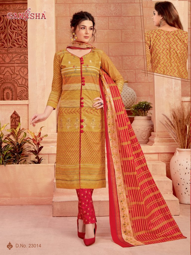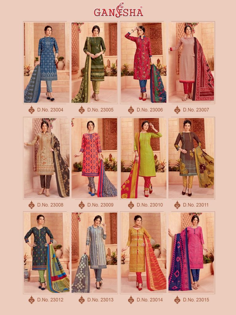 | DETAILS | ?Today We Are Launching A Super Hit Catlouge for this *NAVRATRI SPECIAL;* With Total New *Style & Designs*. ? ? ? *?GANESHA?* *Catlouge Name* *?GANESHA VOL 23?* ( Pure Designer Cotton Dress Material ) ?Top :- *Pure Cotton* *Designs :- 12 * Rate:- 2️⃣8️⃣5️⃣ *LIMITED STOCK*? ?� *THANK YOU* ? |