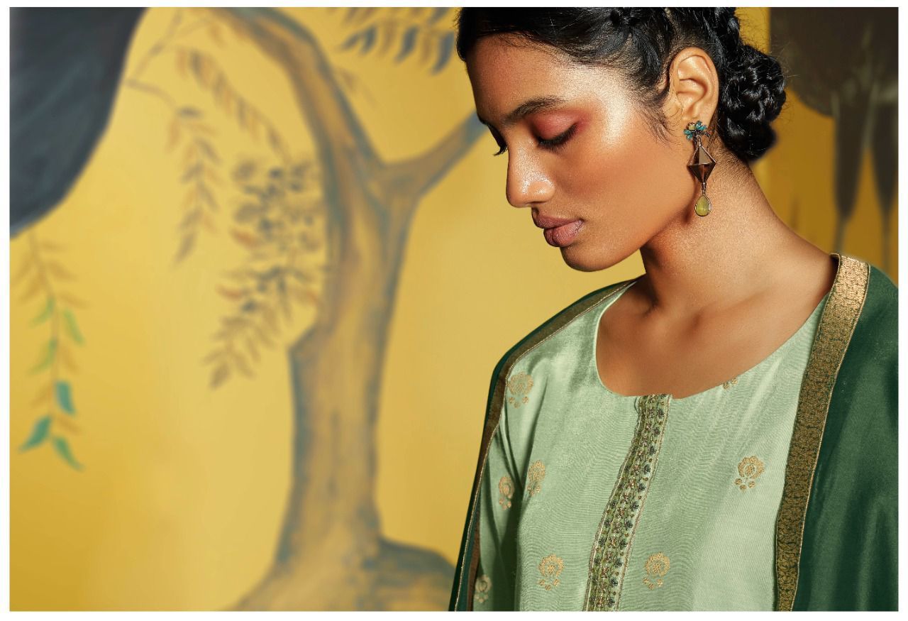 | DETAILS | *TOP:* PREMIUM FINEST BEMBERG SILK JACQUARD WITH EMBROIDERY & HANDWORK *BOTTOM:* PREMIUM COTTON SATIN *DUPATTA:* PURE KORA SILK WITH EMBROIDERY AND JACQUARD BORDER |