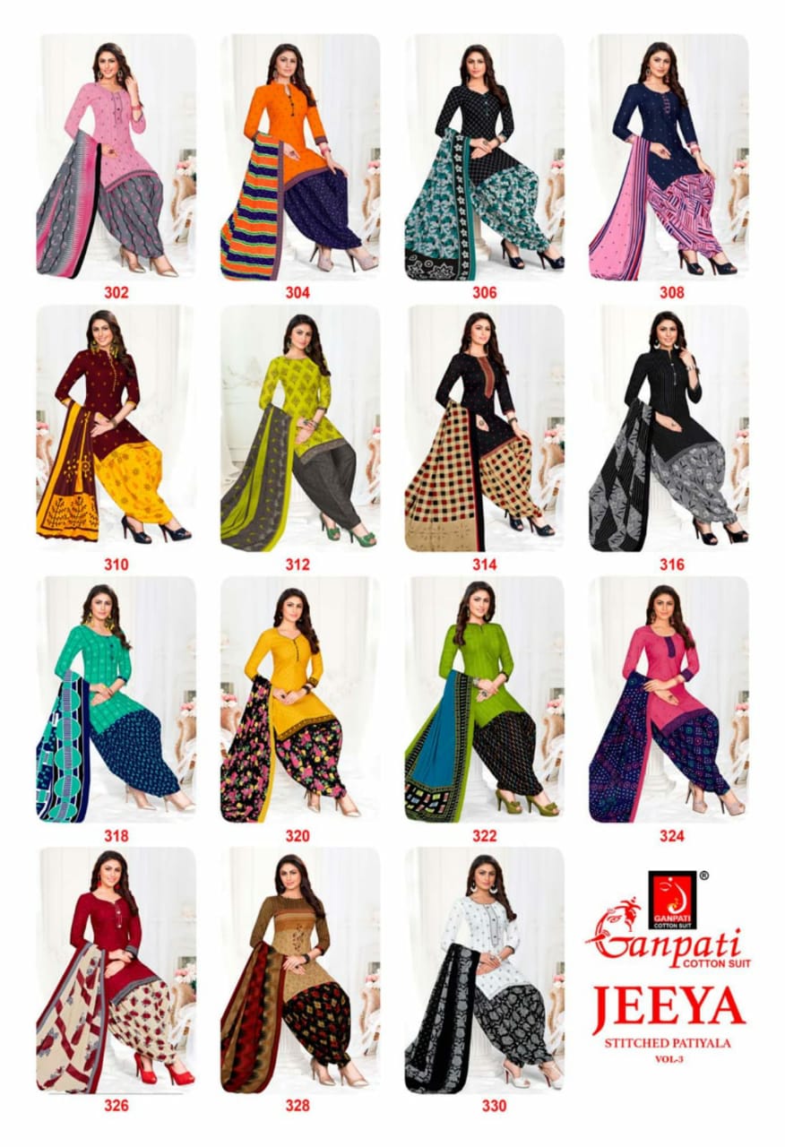 | DETAILS | *Ganpati* *Jeeya Vol 3* *Cotton Patiyala Suit* *Piece:- 15* *Ready Made* *Ready Delivery* |