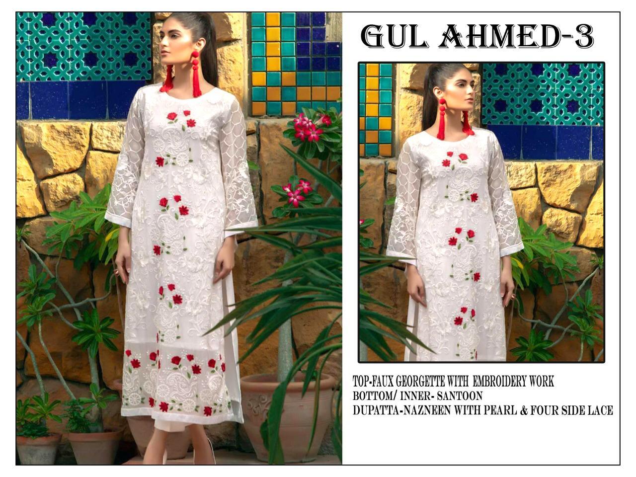 Buy GULAHMED 03 PAKISTANI GEORGETTE WHITE SUIT from Pehnava Fashion mart in best price with Fast Shipping all over world