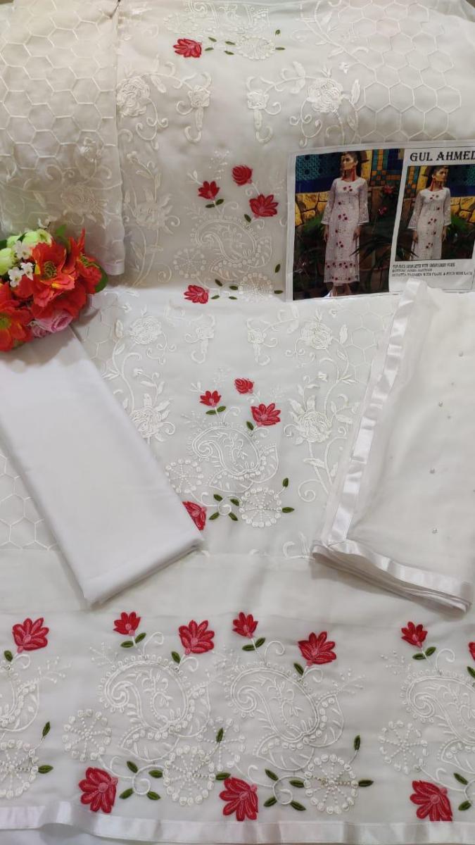 ( GULAHMED 03 PAKISTANI GEORGETTE WHITE SUIT ) Buy in wholesale price