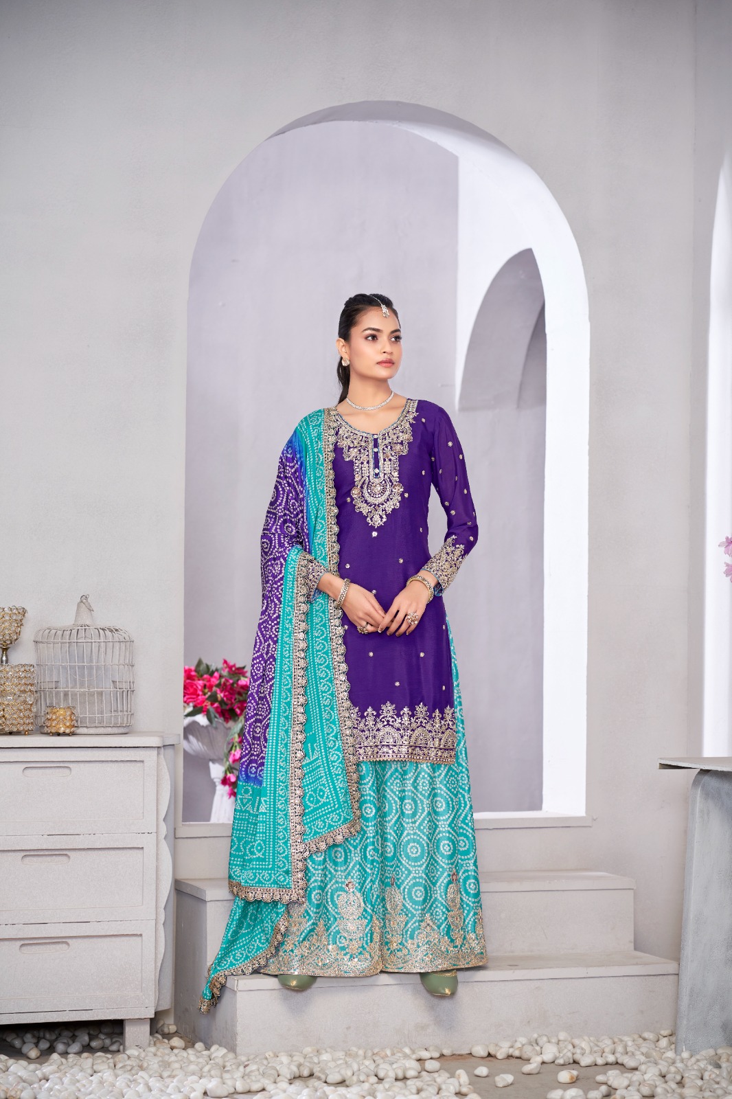 **FABRIC DETAILS:- Fabric Top : Premium & Finest Chinnon with dabka dori embroidery handmade mirror work embroidery Dupatta : Premium Chinnon digital printed with four side embroidery lace Pant :Premium and Finest Chinnon Digital Printed Sharara with handwork WORK : Dabka Dori and Sequince Work with handmade mirror work embroidery and digital print |
