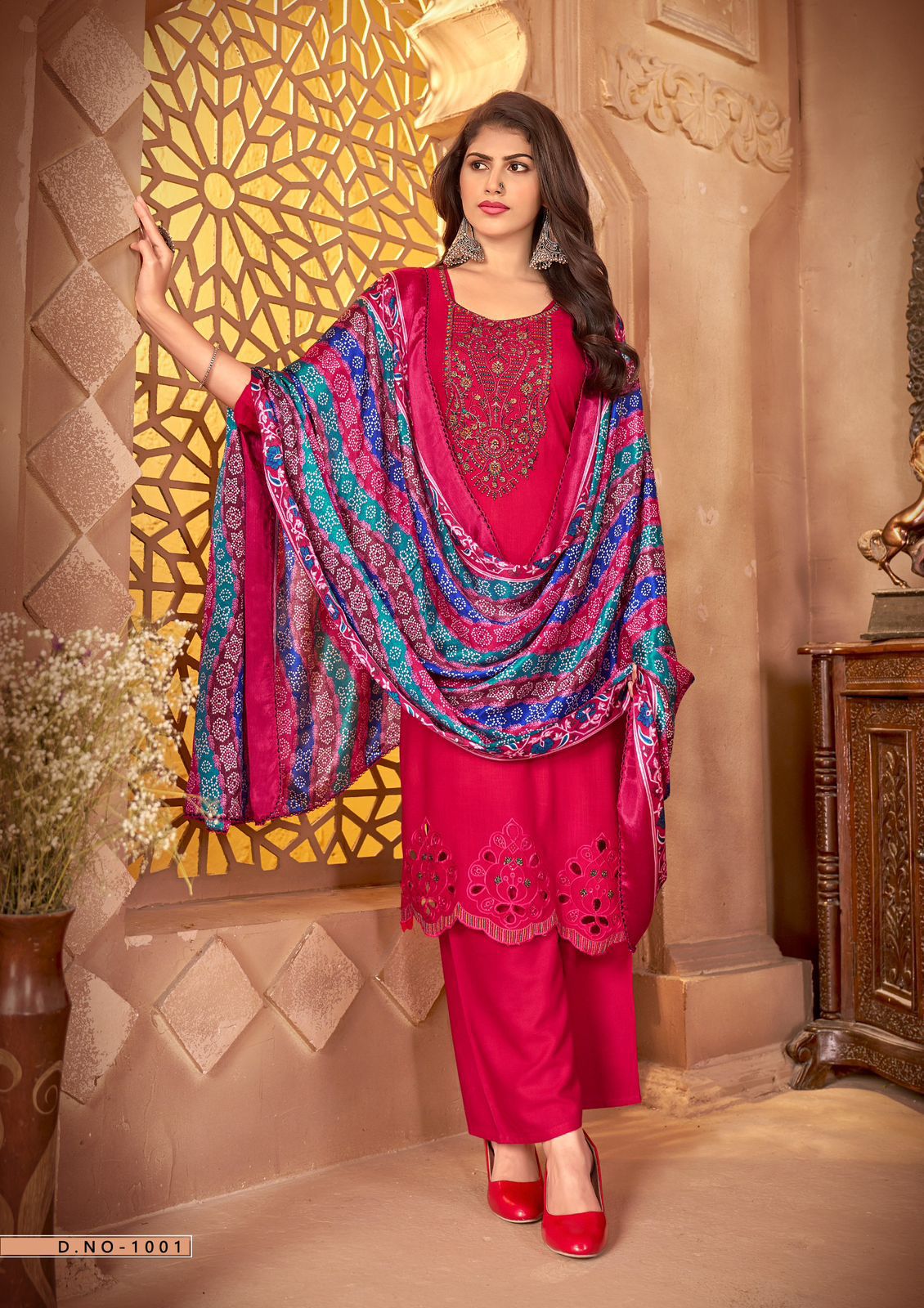 | DETAILS | **FABRIC DETAILS:- TOP: Pure Reyon Slub With Embroidery And Swarovski DAMAN CATVORK Diamond Work (Apx. 2.50 Mtrs)* BOTTOM: Pure Reyon Solid (Apx 2.50 Mtrs)* *DUPPATTA: Pure Designer Bandhej Crush Dupatta (2.25 Mtrs)* |