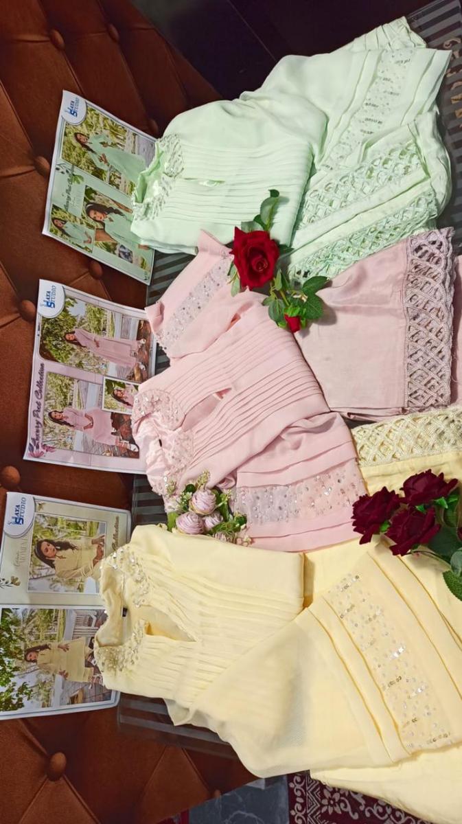 | DETAILS | * Top*:- Pure self lining georgette *Inner :- Santoon *Bottom * :- pure santoon *Colour* Lemon yellow Light Dusty pink Mint green‼️ *Size Chart *‼️ *Top xl size chest* (42) *Bottom xl size* (34-38)*Full Set Available* |