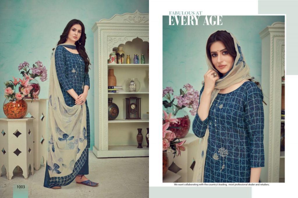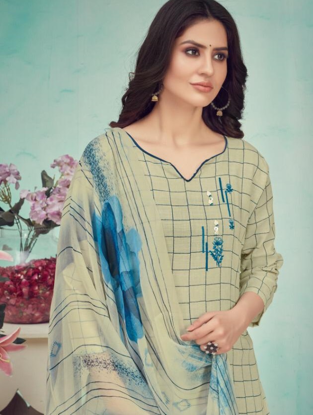 | DETAILS | Top: viscose pure heavy muslin printed with handwork and embroidery and matching buttons Dupatta: pure viscose chiffon printed Bottom : cotton solid |