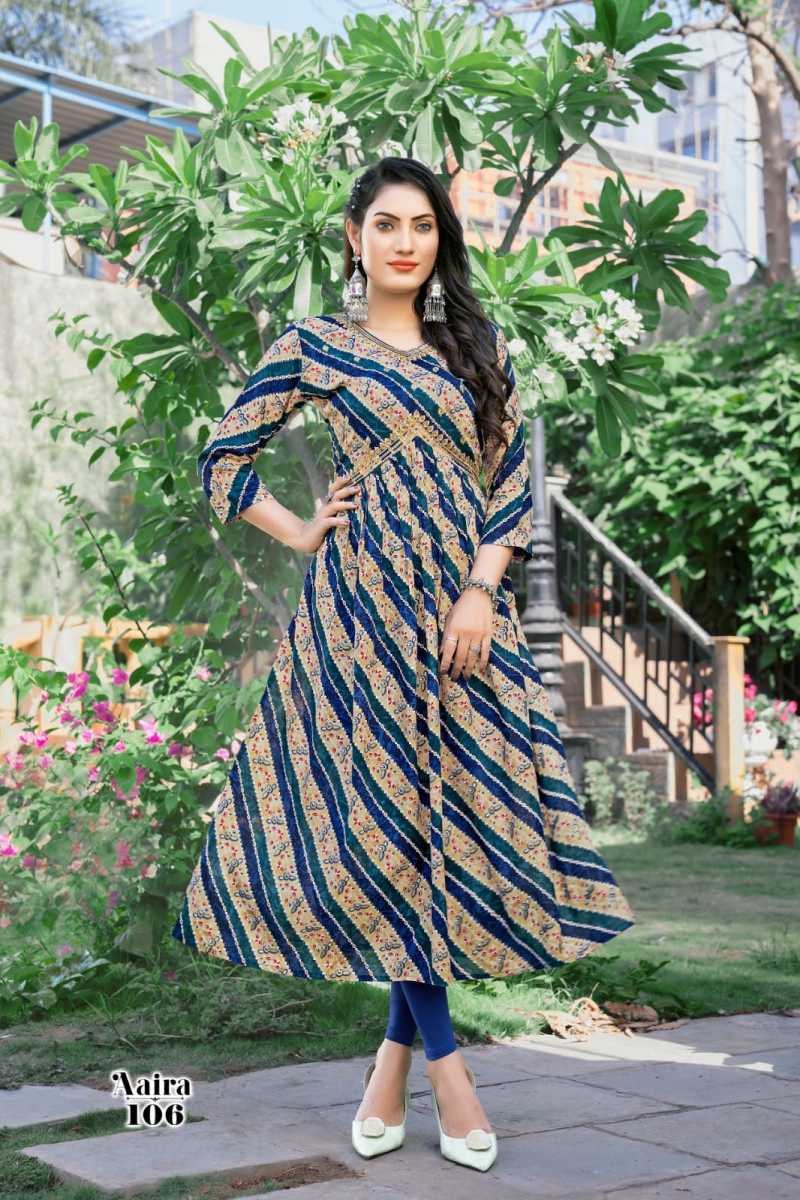 | DETAILS | **Fabric: *Heavy RAYON FOIL Prints*Concept: *Alia Cut Festive wear Kurtis with Heavy Embroidery and Naira Cut* DESIGNS: *7* SIZES: *S, M, L, XL, XXL & 3XL* ** |