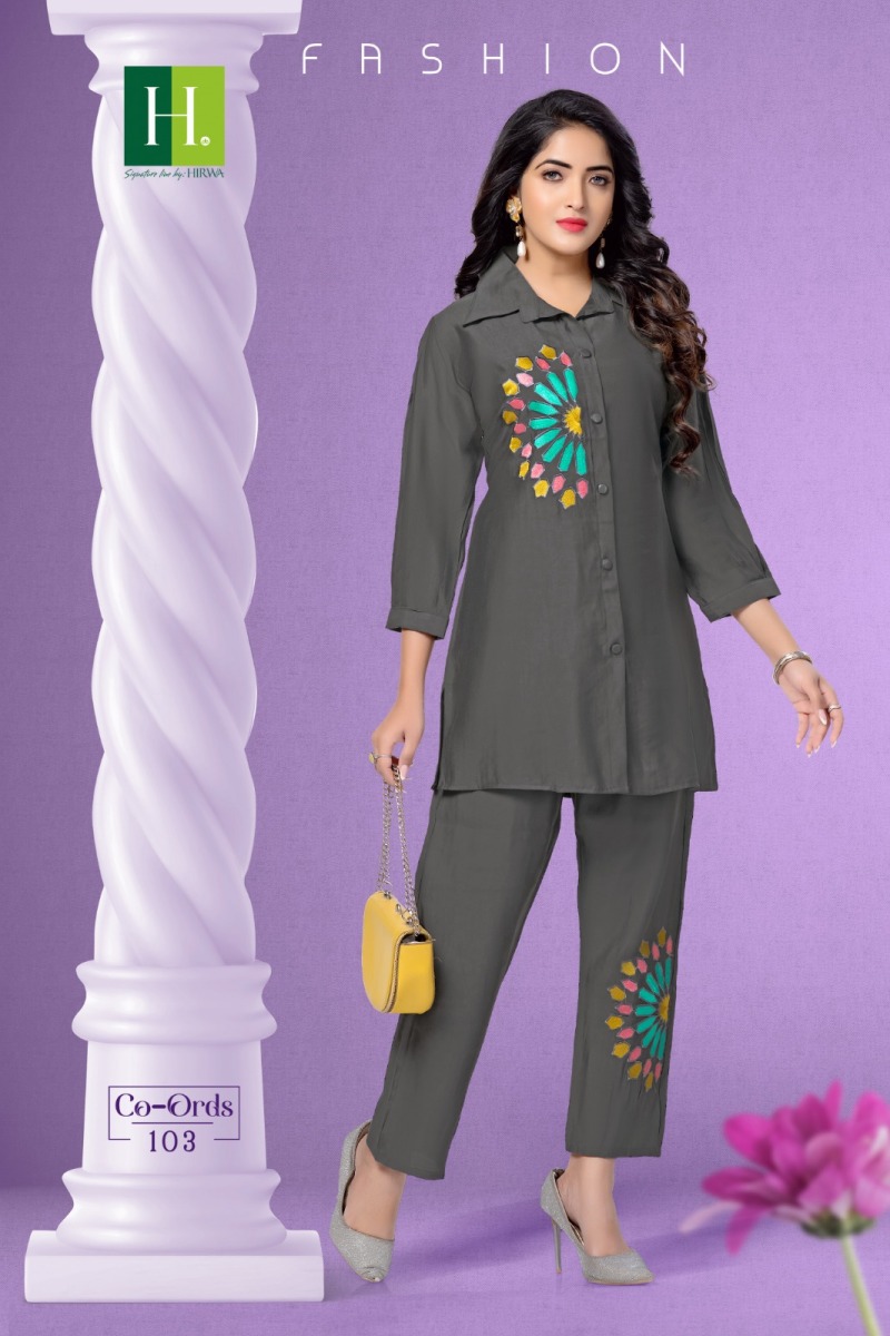 HIRWA CO-ORDS EMBROIDERY CORD SETS NEW CATALOGUE