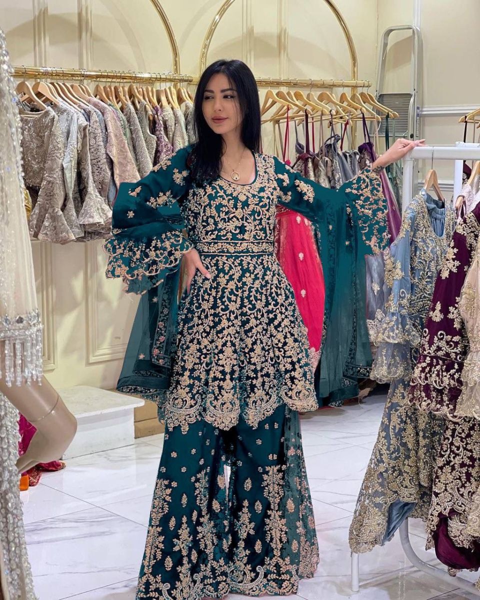 FABRIC DETAILS :- TOP FABRIC : HEAVY BUTTERFLY NET WITH HAVVY EMBROIDERY WORK AND DOUBLE RUFFLE SLEEVE WITH WORK #TOP INNER : HEAVY MICRO COTTON #TOP LENGTH : 32-33 INC # TOP SIZE : 42 XL FREE SIZE (fullstitched) (XXL MARGIN)(front&bake side full work)PLAZZO # PLAZZO FABRICS : HEAVY BUTTERFLY NET WITH HEAVY EMBROIDERY WORK #PLAZZO INNER : HAVVY MICRO COTTON # PLAZZO LENGTH : 41-42 INC (fully stitched) (UP TO XXL)* DUPATTA* # DUPATTA FABRICS : HEAVY BUTTERFLY WITH HEAVY EMBROIDERY WORK AND BORDER WORK. CUT 2.10 MTRVIEW PRODUCTS