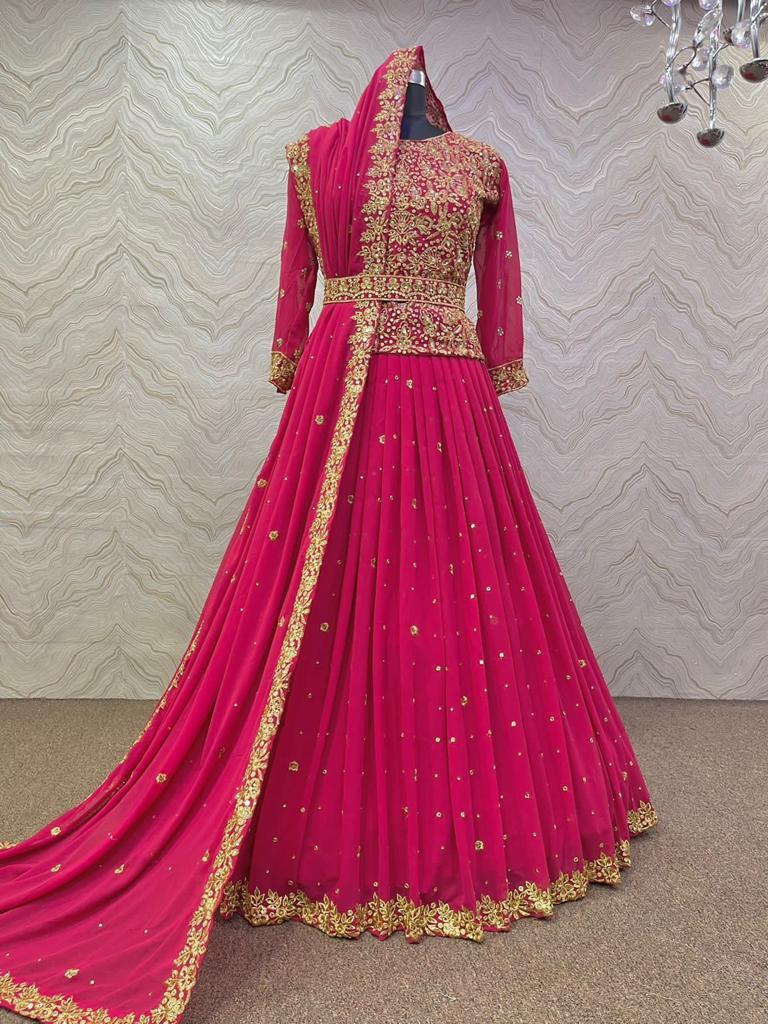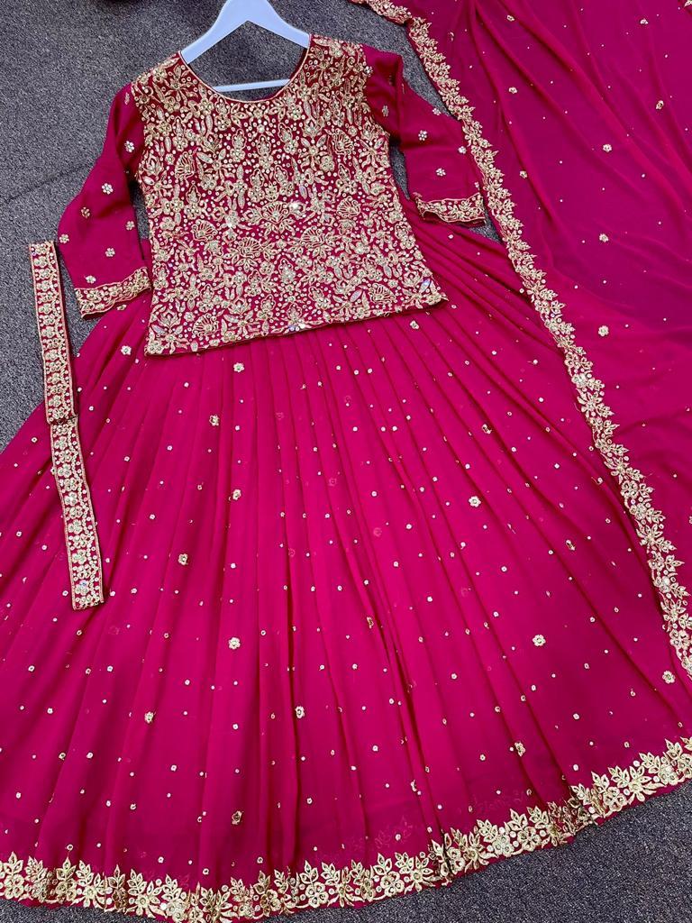 FABRIC DETAILS :- TOP TOP FABRIC : HEAVY FAUX GEORGETTE AND FULL SLEEVE WITH WORK TOP WORK : HEAVY EMBROIDERY AND 5mm SEQUINS WITH STONE HAND WORK TOP INNER : HEAVY MICRO COTTON TOP LENGTH : 21-22 INC (Full Stitched)WAIST BELT : EMBROIDERY AND STONE HAND WORKLAHENGA LAHENGA FABRIC : HEAVY FAUX GEORGETTE LAHENGA INNER : HEAVY MICRO COTTON LAHENGA WORK : HEAVY EMBROIDERY AND 5mm SEQUENCE WITH STONE HAND WORK LAHENGA FLAIR : 3 MTR LAHENGA LENGTH : 42-44 INC (Semi Stitched)DUPATTA DUPATTA FABRIC : HEAVY FAUX GEORGETTE WITH HEAVY EMBROIDERY AND 5mm SEQUENCE WITH STONE HAND WORK DUPATTA FABRIC : 2.70 MTRWEIGHT : 1.0 kgVIEW PRODUCTS