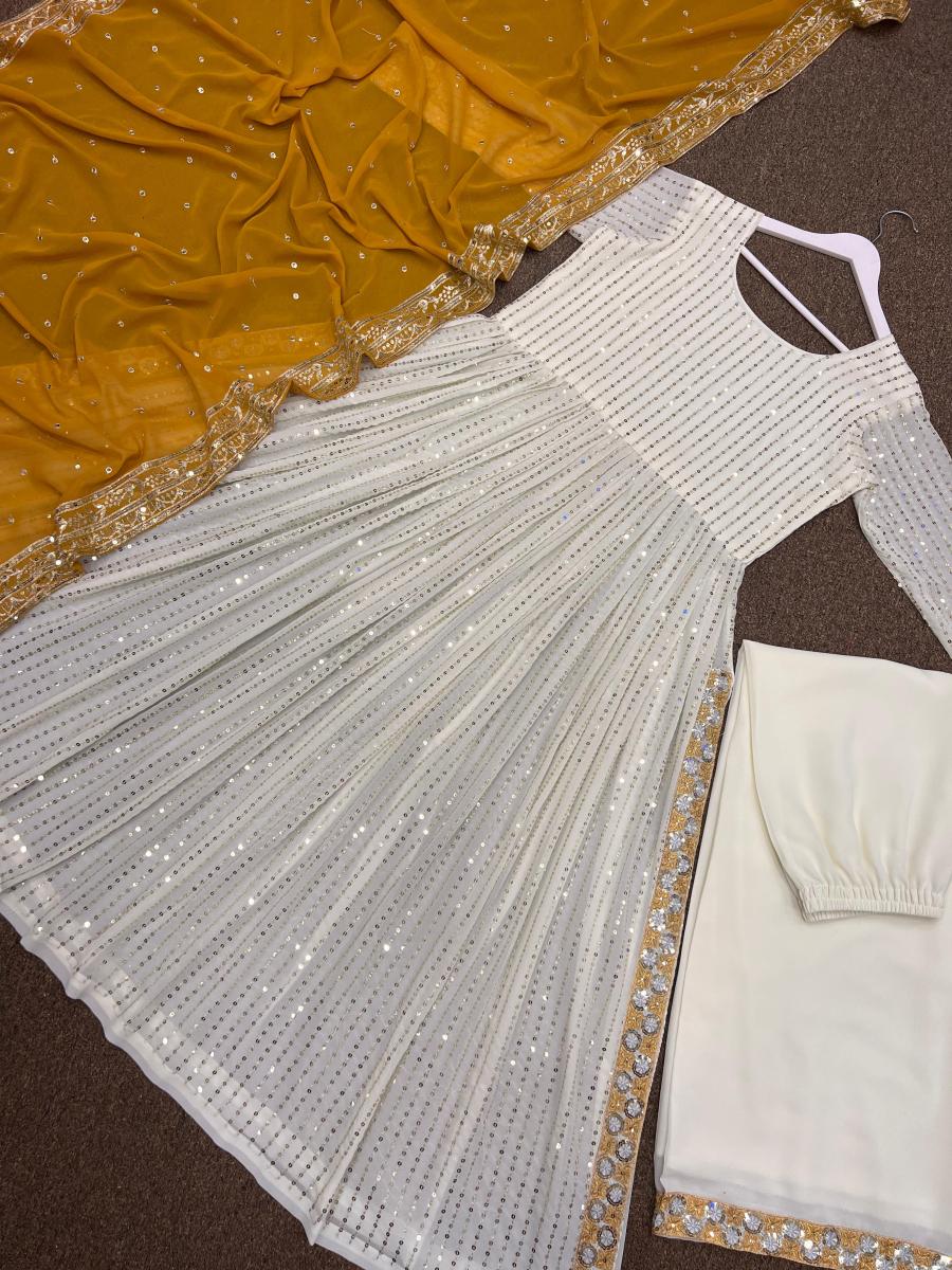 | FABRIC DETAILS | Kurti # Kurti Fabric : Faux Georgette # Kurti Work : Heavy Embroidery And 5mm Sequins Work (Only Front Side Work)# Kurti Inner : Micro Cotton # Kurti Length : 53-55 Inc # Kurti Size : 42 XL Free Size (Full Stitched ) XXL Margin Plazzo Pent # Plazzo Fabric : Faux Georgette With Embroidery And 5mm Sequins Work Lace Border # Plazzo Inner : Micro Cotton # Plazzo Length: 40-42 INC (Fully Stitched) Up To XXLDupatta # Dupatta Fabric : Faux Georgette With Heavy Embroidery And 5mm Sequins Work # Dupatta Length : 2.10 Mtr |