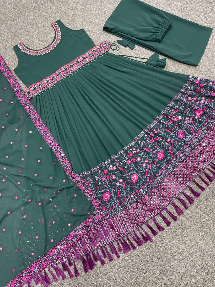 FABRIC DETAILS :- * KURTI * # KURTI FABRIC : HEAVY FAUX GEORGETTE AND UNSTITCHED SHORT SLEEVE FABRIC # KURTI WORK : HEAVY EMBROIDERY AND 5mm SEQUENCE WORK WITH HANGING LATKAN LACE WORK (Only Front Side Work)# KURTI INNER : HEAVY MICRO COTTON # KURTI LANGTH : 52-54 INC # KURTI SIZE : 42 xl free size (full stitched ) XXL MARGINWAIST BELT : EMBROIDERY AND 5mm SEQUINS WORK WITH LATKAN MOTI LACE WORK PLAZZO PENT # PLAZZO FABRIC : HEAVY FAUX GEORGETTE *# PLAZZO INNER * : HEAVY MICRO COTTON # PLAZZO LENGTH: 40-42 INC (fully stitched) UP TO XXL * DUPATTA * # DUPATTA FABRICS : HEAVY FAUX GEORGETTE WITH EMBROIDERY AND 5mm SEQUENCE WORK AND HANGING LATKAN LACE WORK # DUPATTA LENGTH : 2.10 MTRHK 1533 D DESIGNER SUITS MANUFACTURER