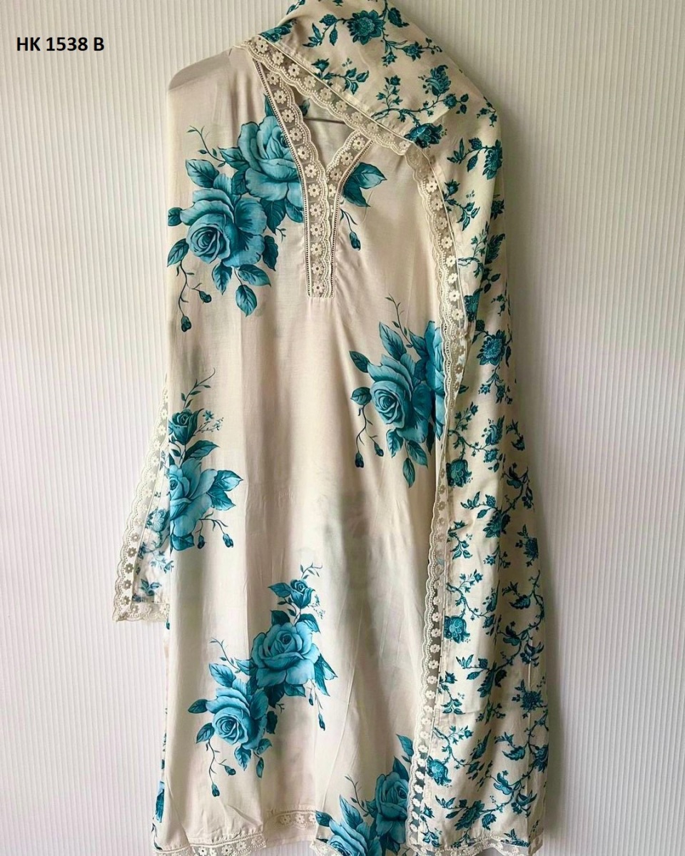 FABRIC DETAILS :- # Kurti Fabric : Heavy Soft Muslin Cotton And Full Sleeve # Kurti Work : Fancy Digital Print With Embroidery Work Lace Border (Both Side Work)# Kurti Inner : Micro Cotton # Kurti Length : 48 Inc # Kurti Size : 42 XL Free Size (Full Stitched ) XXL Margin Pent # Pent Fabric : Soft Butter Silk # Pent Length: 40-42 Inc (Fully Stitched) Up To XXL Dupatta # Dupatta Fabric : Heavy Soft Muslin Cotton With Fancy Digital Print With Embroidery Work Lace Border # Dupatta Length : 2.10 MtrWeight : 700 gmHK 1538 B READYMADE KURTI MANUFACTURER