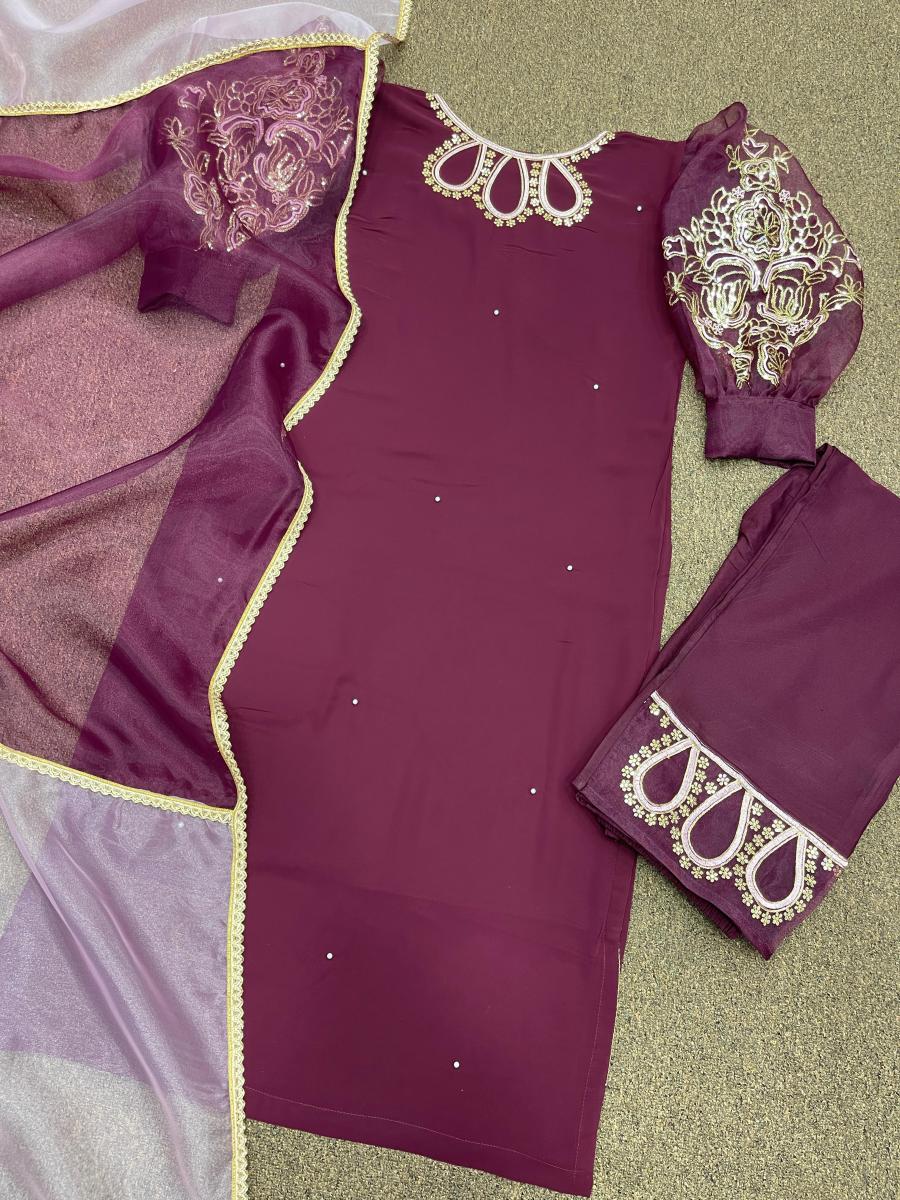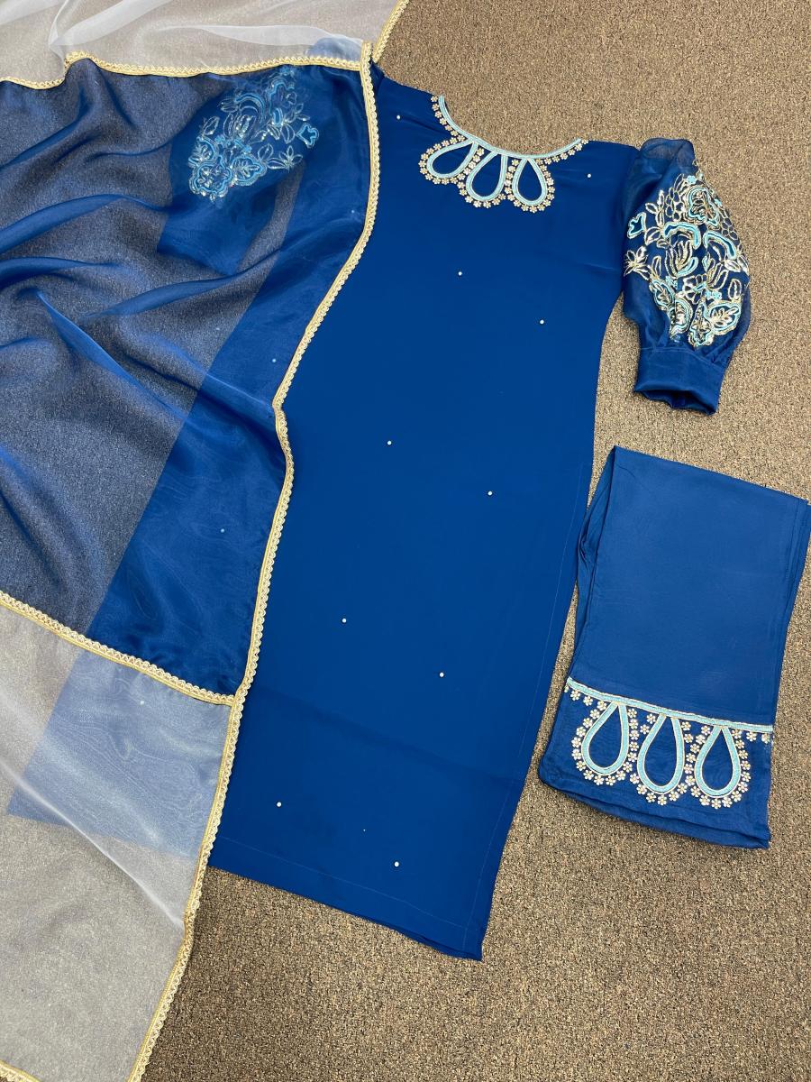 | FABRIC DETAILS | Kurti Fabric : Faux Georgette And Balloon Sleeve With Heavy Work # Kurti Work : Fancy Embroidery And Sequins Work With Riveted Moti (Only Front Side Work)# Kurti Inner : Micro Cotton # Kurti Length : 47 Inc # Kurti Size : M(38), L(40), XL(42), XXL(44) (Full Stitched)Bottom # Bottom Fabric : Heavy Parampara Silk With Embroidery And Sequins Work # Bottom Length: 40-42 Inc (Fully Stitched) Up To XXLDupatta # Dupatta Fabric : Soft Organza Silk With Cut Work # Dupatta Length : 2.10 Mtr |