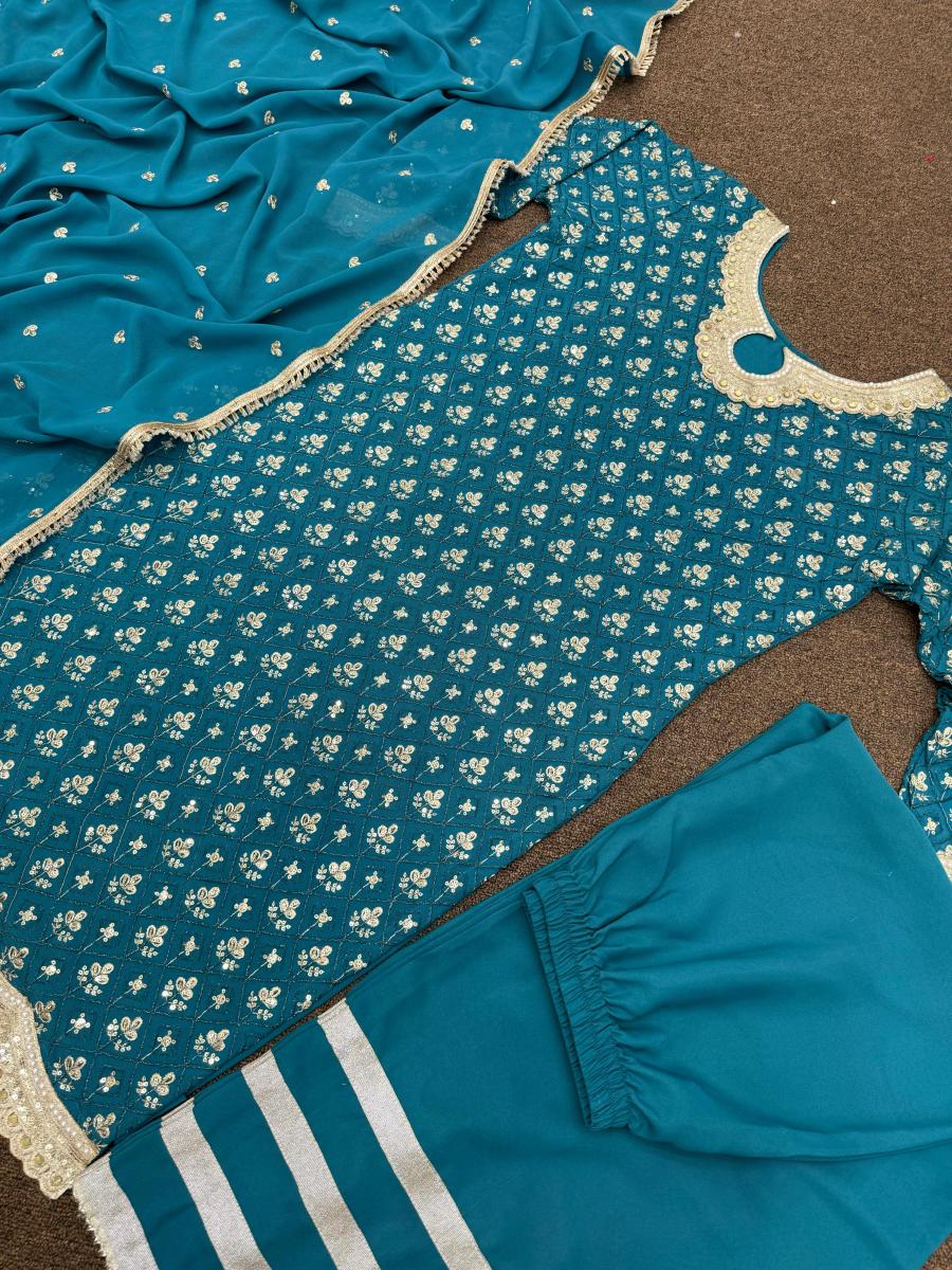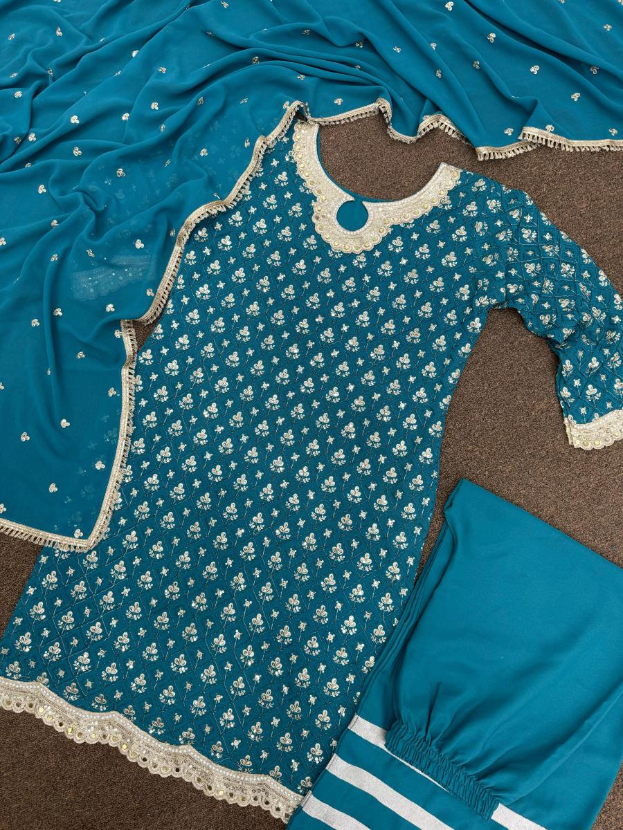 | FABRIC DETAILS | Kurti # Kurti Fabric : Faux Georgette And Sleeve With Work # Kurti Work : Fancy Heavy Embroidery And Sequins Work With Real Mirror And Stone Hand Work (Only Front Side Work)# Kurti Inner : Micro Cotton # Kurti Length : 42-43 Inc # Kurti Size : 42 XL Free Size (Full Stitched) XXL Margin Plazzo # Plazzo Fabric : Heavy Butter Silk # Plazzo Work : Fancy Lace Border # Plazzo Length: 40-41 Inc (Fully Stitched) Up To XXL Dupatta # Dupatta Fabric : Faux Georgette With Embroidery And Fancy Lace Border # Dupatta Length : 2.10 Mtr |