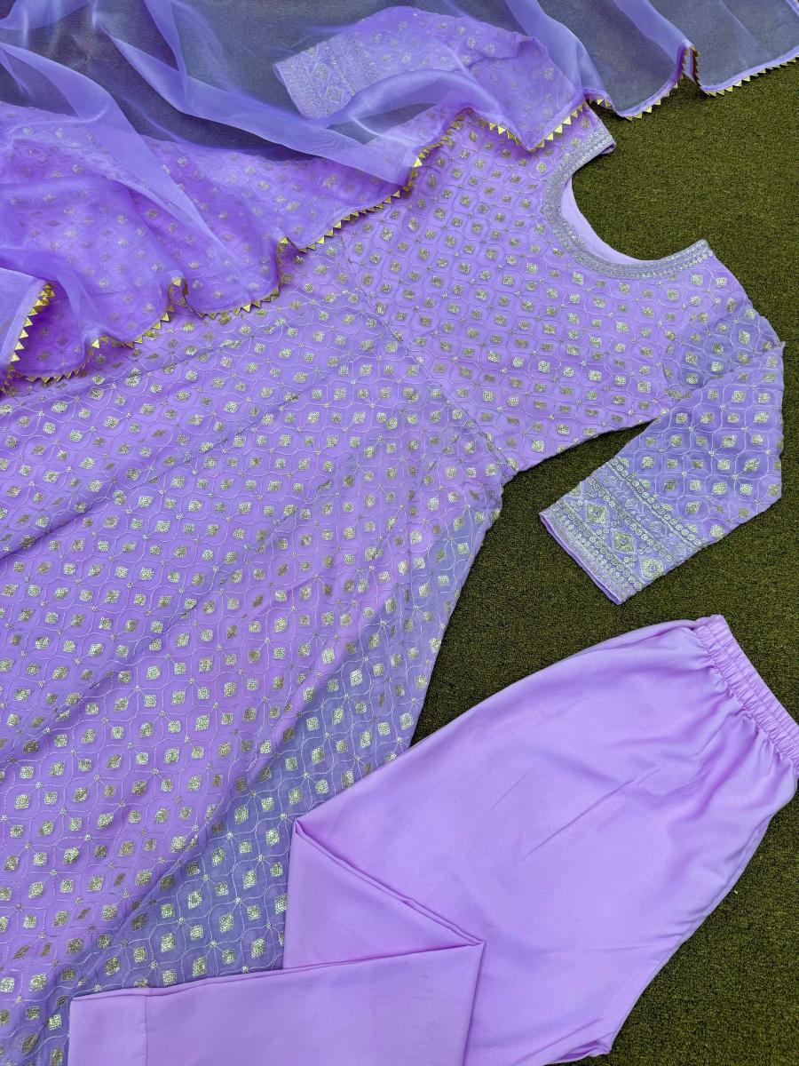 (Fully Stitched) Up To XXL Dupatta Fabric : Soft Organza Silk With Fancy Lace Border