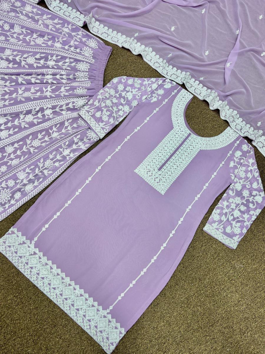 | FABRIC DETAILS | Top # Top Fabric : Faux Georgette And Full Sleeve With Work # Top Inner : Micro Cotton # Top Work : Heavy Embroidery Chain Stitched Work (Only Front Side Work)# Top Length : 37 Inc # Top Size : 42 XL Free Size (Full Stitched) XXL Margin Plazzo # Plazzo Fabric : Faux Georgette # Plazzo Work : Heavy Embroidery Chain Stitched Work # Sharara Inner : Micro Cotton # Sharara Length : 40-42 Inc (Fully Stitched) Up To XXL Dupatta # Dupatta Fabric : Faux Georgette # Dupatta Work : Fancy Embroidery Chain Stitched Work # Dupatta Length : 2.10 Mtr |
