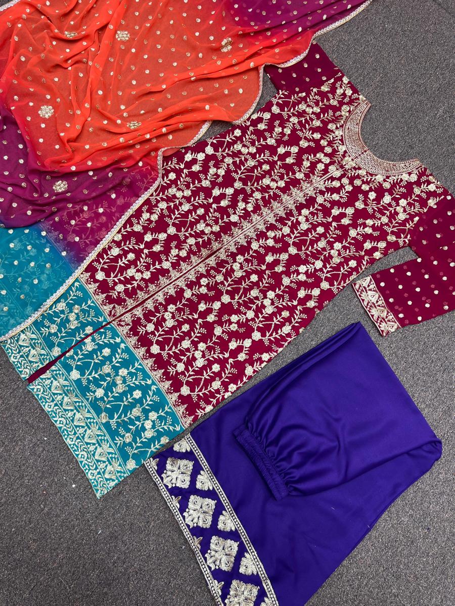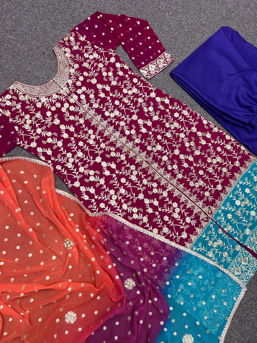 | FABRIC DETAILS | Kurti # Kurti Fabric : Faux Georgette And Sleeve With Work # Kurti Work : Fancy Heavy Embroidery Work (Only Front Side Work)# Kurti Inner : Micro Cotton # Kurti Length : 45-46 Inc # Kurti Size : 42 XL Free Size (Full Stitched) XXL Margin Plazzo # Plazzo Fabric : Heavy Parampara Silk # Plazzo Work : Fancy Embroidery Work # Plazzo Length: 40 Inc (Fully Stitched) Up To XXL Dupatta # Dupatta Fabric : Faux Georgette And Fancy Digital Print With Embroidery Work And Fancy Lace Border # Dupatta Length : 2.10 Mtr |