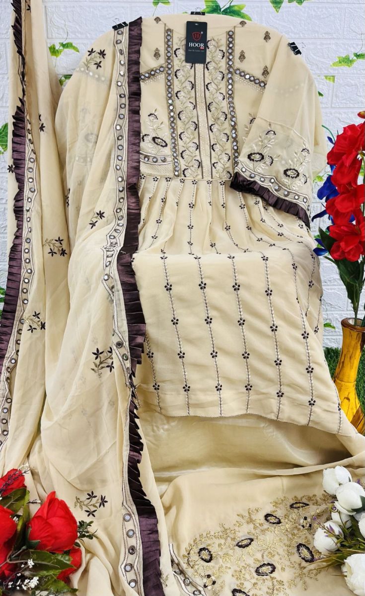 | DETAILS | **Fabric details Top : FOX GEORGETTE *(With Embroidery +Miror Work)*Bottom : Fox Georgette *(With Embroidery + Mirror Work)*inner : SANTOONDupatta : Fox Georgette *(With Embroidery work)* *(Four said Lace)*Size :-50(5XL) ** |