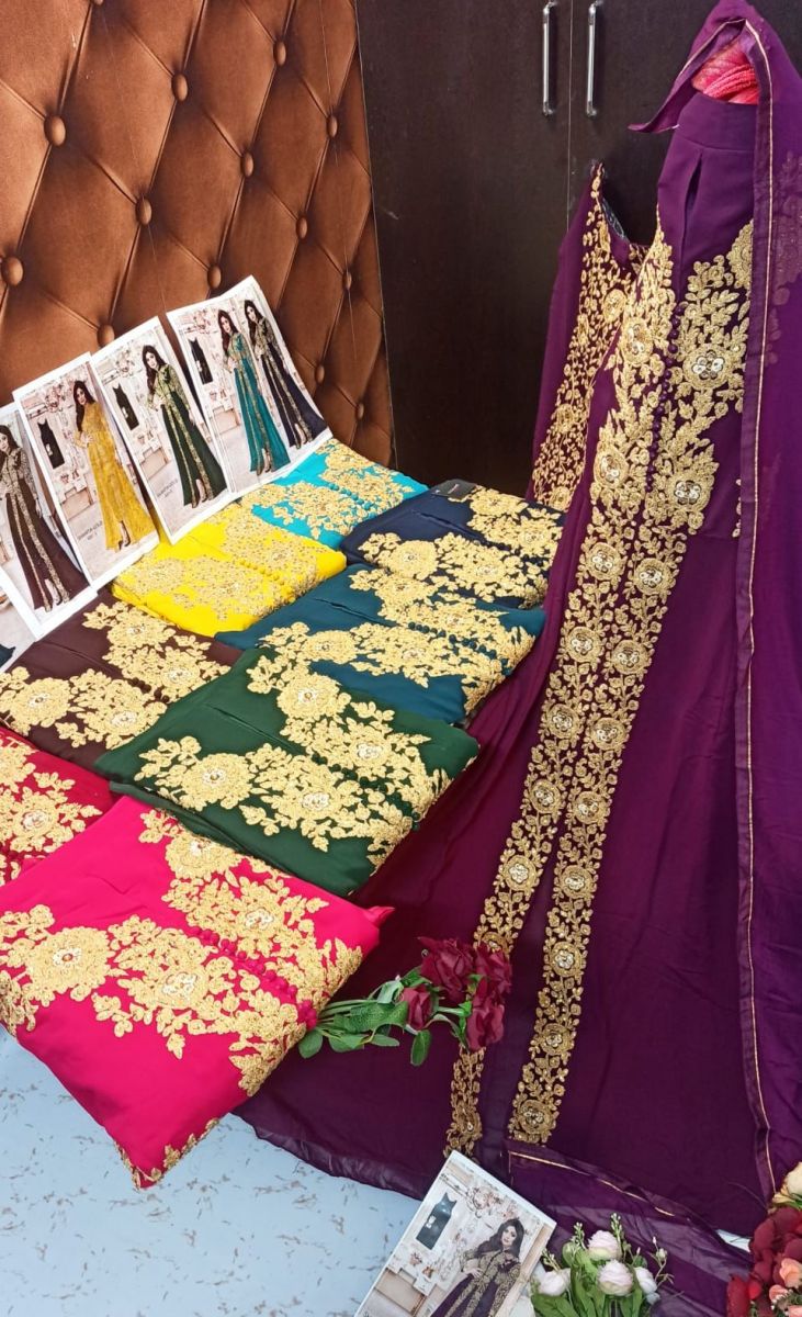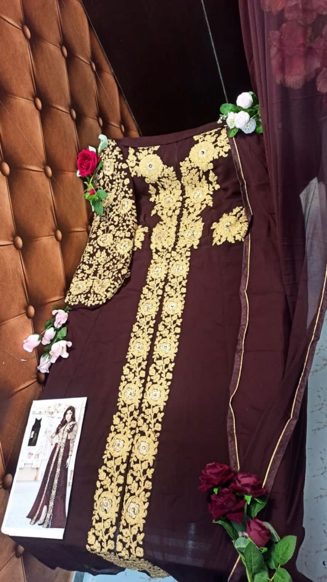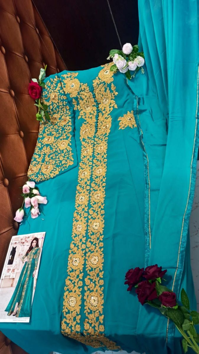 | DETAILS | ---: Fabric Details: ---*Top*:- Heavy Georgette With Embroidery Work*Inner* :- Santoon*Bottom* :-Santoon*Dupatta* :-NazminSize :- 48 (4XL)Type :- Semi Stitched |