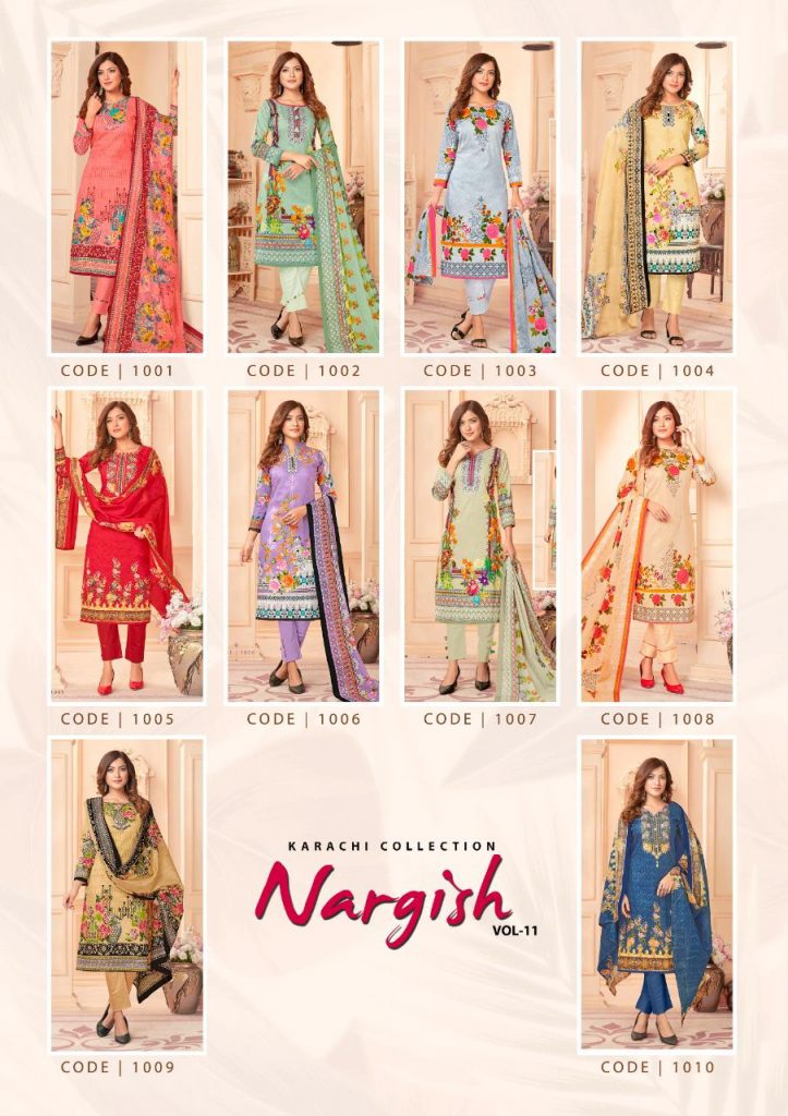 | DETAILS | Dear Customers, Welcome to *JAGRUTI INDUSTRIES* *NEW LAUNCHING* 📕Catalogue:- *NARGISH VOL-11* 👜Packing- *POUCH PACKING* RATE-. *315/* ✂ Top – 2:40 🧣DUPATTA- *COTTON* |