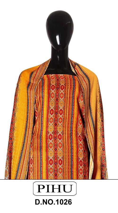 | DETAILS | *JAIN TEX* PRESENTS WINTER COLLECTION ????? ? *PIHU* ? *TOP*-Pure Pashmina prints(2.5 mtrs) *Bottom*-Pure Pashmina Twill(2.5mtrs approx) *Dupatta*—Pure *SHAWL* exclusive prints RATE-550/-. Net+Gst |