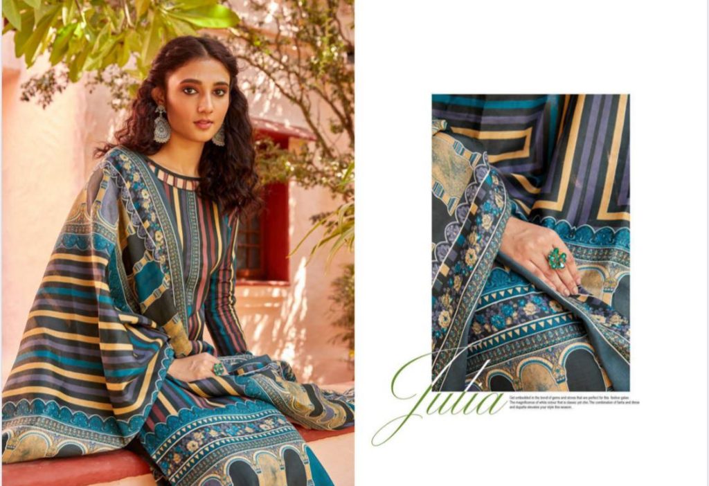 | DETAILS | NAME:? JASMINE VOL 21? ??Fabric details ??. ??Top :2.50 mtr (SOFT COTTON) ?Bottom : 2.50 mtr (SOFT COTTON) ?Dupp: 2.25mtr (SOFT COTTON) ?Designs : 12 ?Rate : 285 + GST |