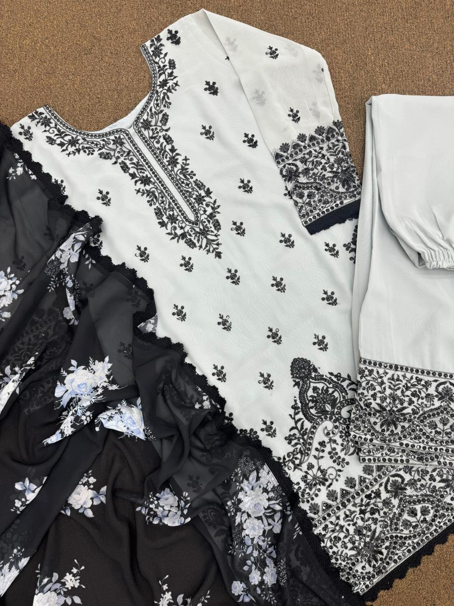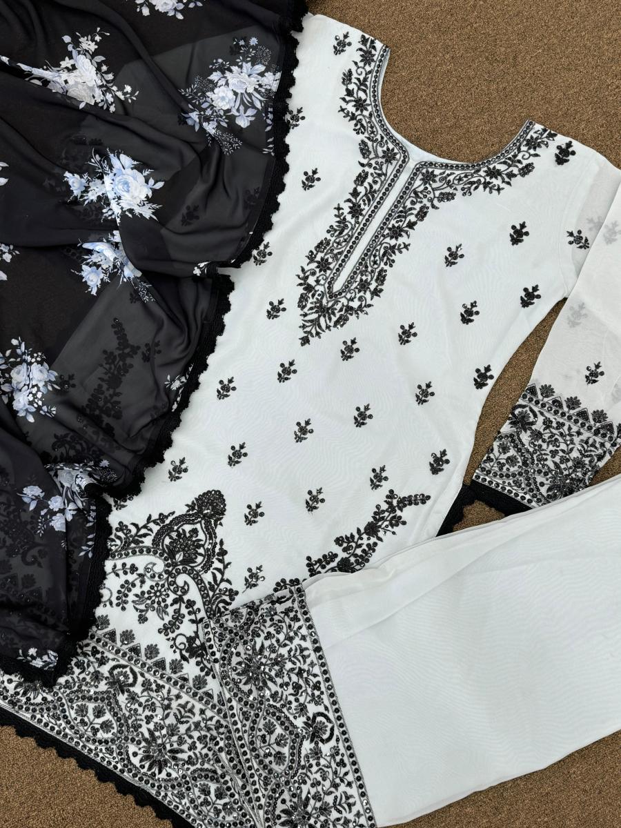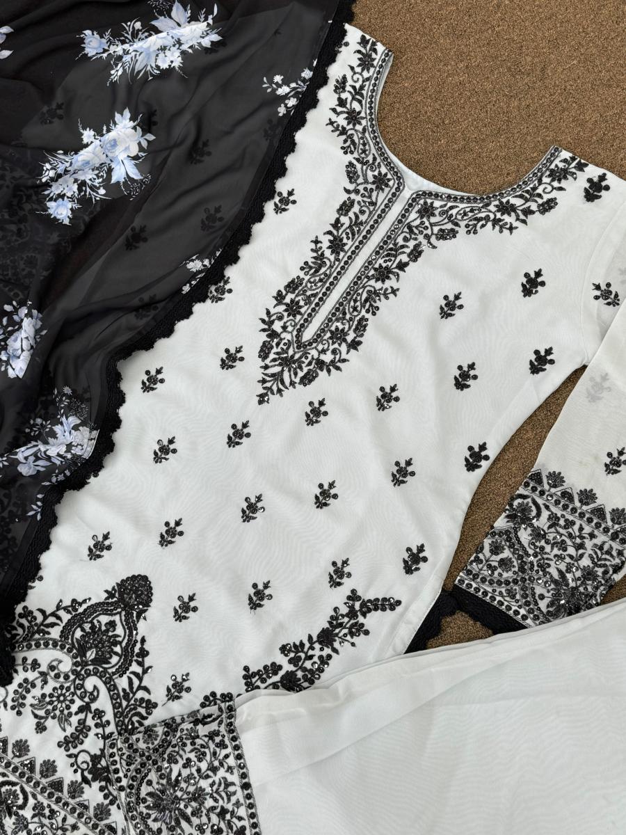| FABRIC DETAILS | KURTI FABRIC :- HEAVY FAUX GEORGETTE. WORK :- ATTRACTIVE EMBROIDERY THREAD AND SEQUENCE WORK WITH READY MADE GPO LACE AT BORDER. (ONLY FRONT SIDE) INNER : HEAVY MICRO COTTON LANGTH :- 45-46 INC SIZE : - FREE SIZE (XL with XXL margin)PLAZZA FABRIC :- HEAVY FAUX GEORGETTE. INNER :- HEAVY MAICRO COTTON. WORK :- BEUTYFUL EMBROIDERY THREAD AND SEQUENCE WORK. LENGTH :- 40-42 inchDUPATTA FABRIC :- HEAVY FAUX GEORGETTE. WORK :- WONDERFUL DIGITAL PRINT WITH READY MADE GPO LACE BORDER. LENGTH :- 2.10 MTR |